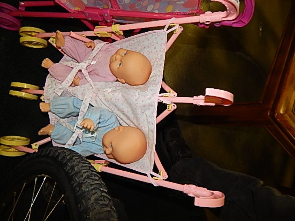 DOUBLE DOLL STROLLER WITH 2 DOLLS