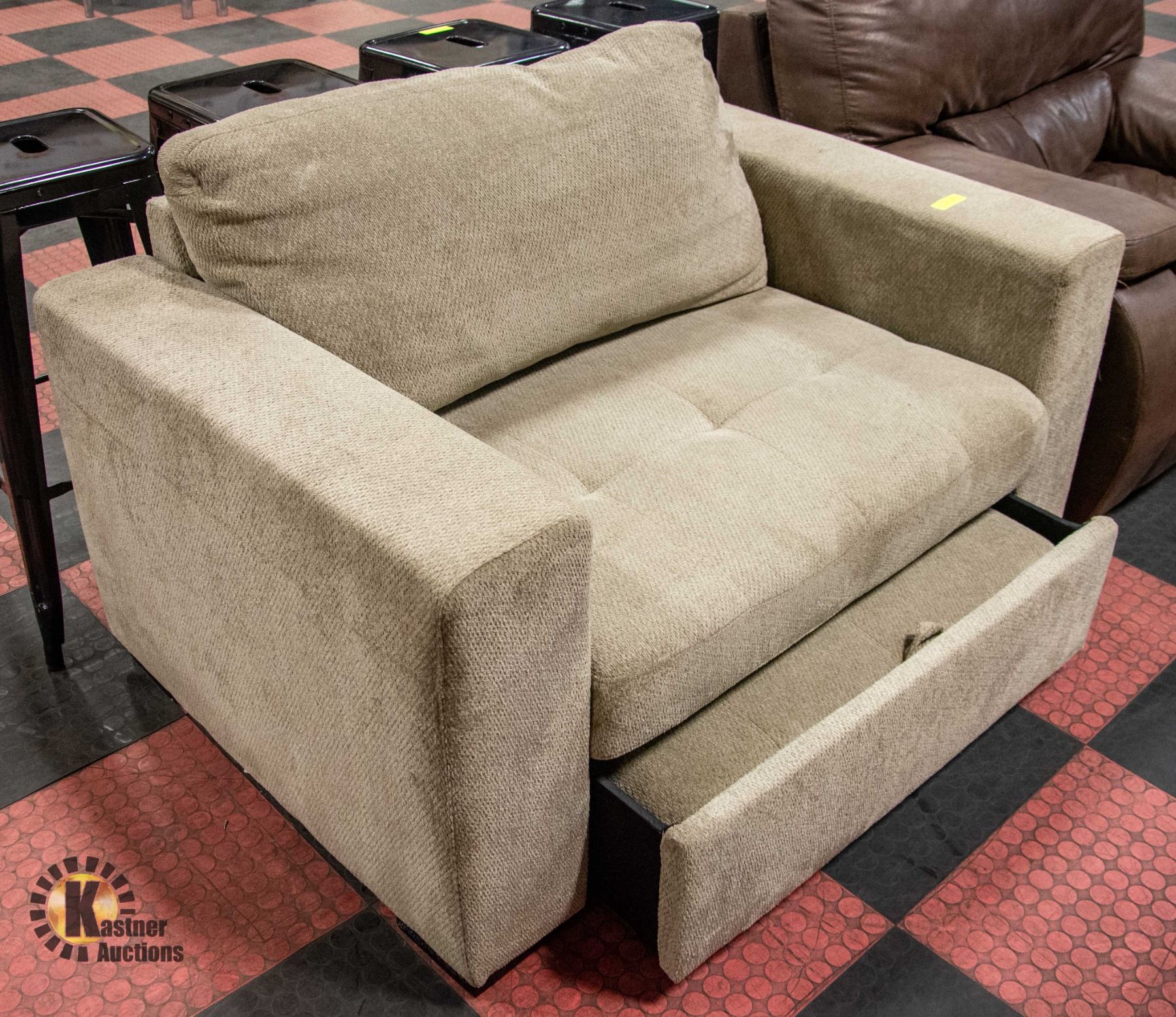 CHAIR - CONVERTIBLE INTO CHAISE-STYLE LOUNGER OR SINGLE BED, EASY CLEAN MICROFIBER **ALL ITEMS MUST BE REMOVED BY 5PM SATURDAY, OCTOBER 5TH 2024. ALL REMAINING ITEMS WILL BE SUBJECT TO A $6.00 PER DAY STORAGE CHARGE. ANY ITEMS REMAINING AFTER MONDAY, OCTOBER 21ST 2024 WILL BE CONSIDERED FORFEITED. NO REFUNDS WILL BE ISSUED FOR FORFEITED ITEMS. TO SCHEDULE A PICK UP APPOINTMENT CLICK HERE