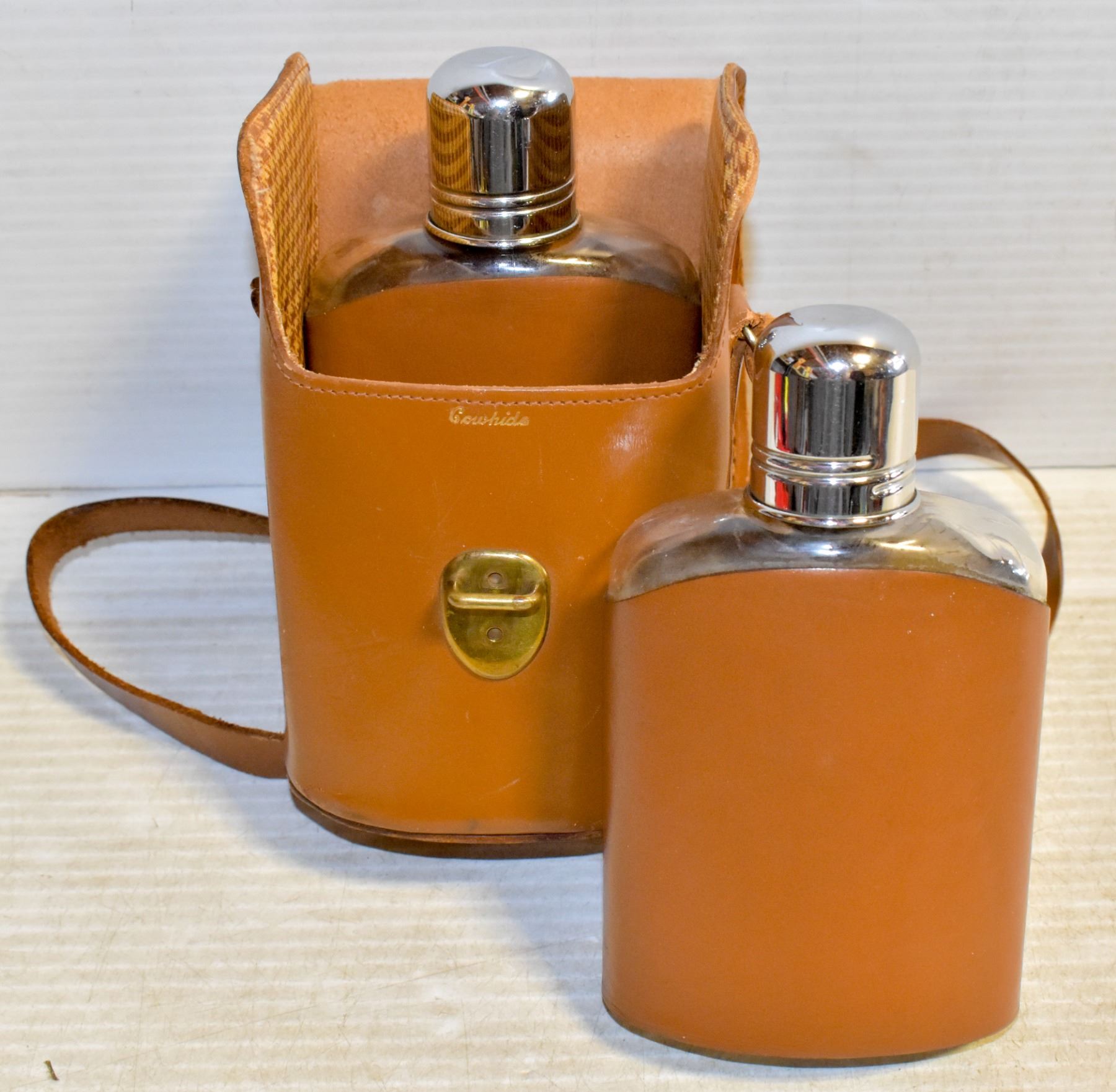 DOUBLE FLASK SET IN LEATHER CARRYING CASE