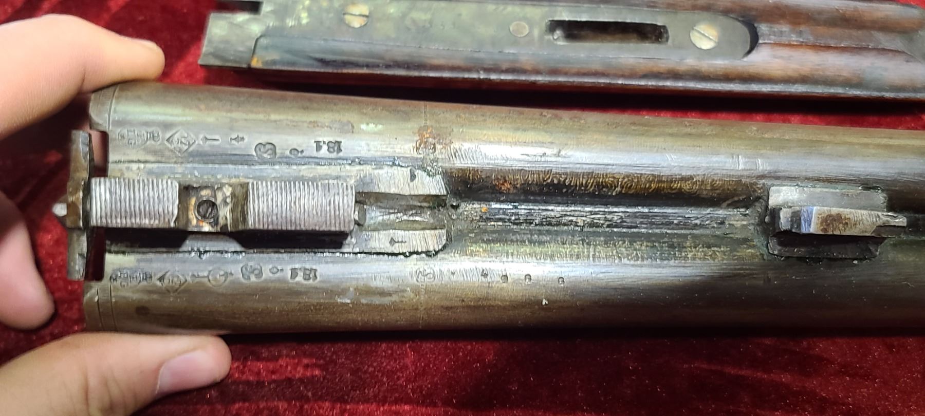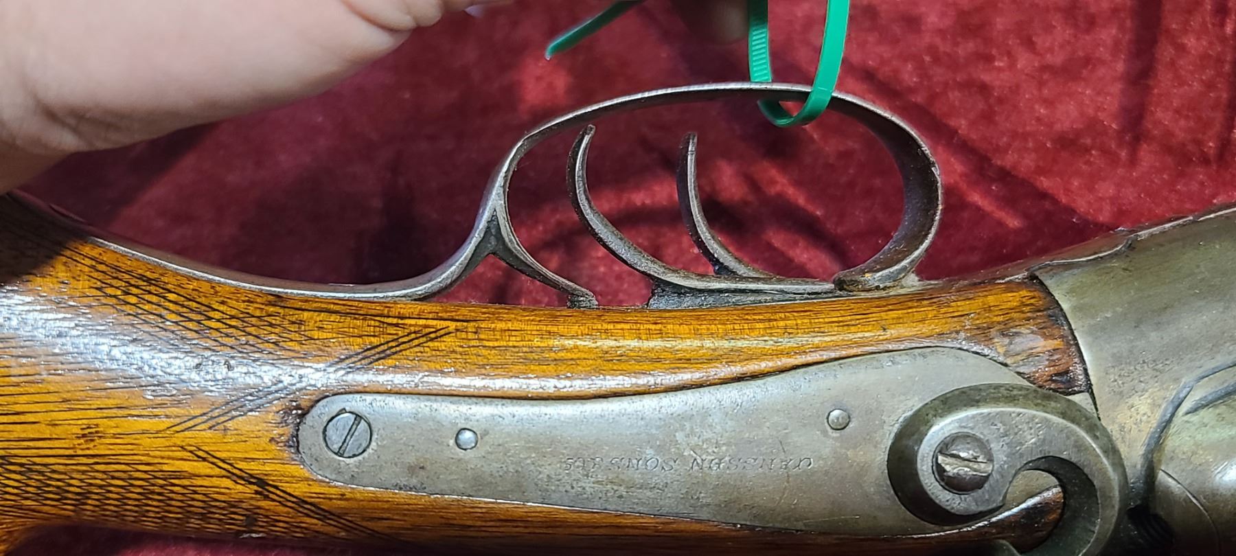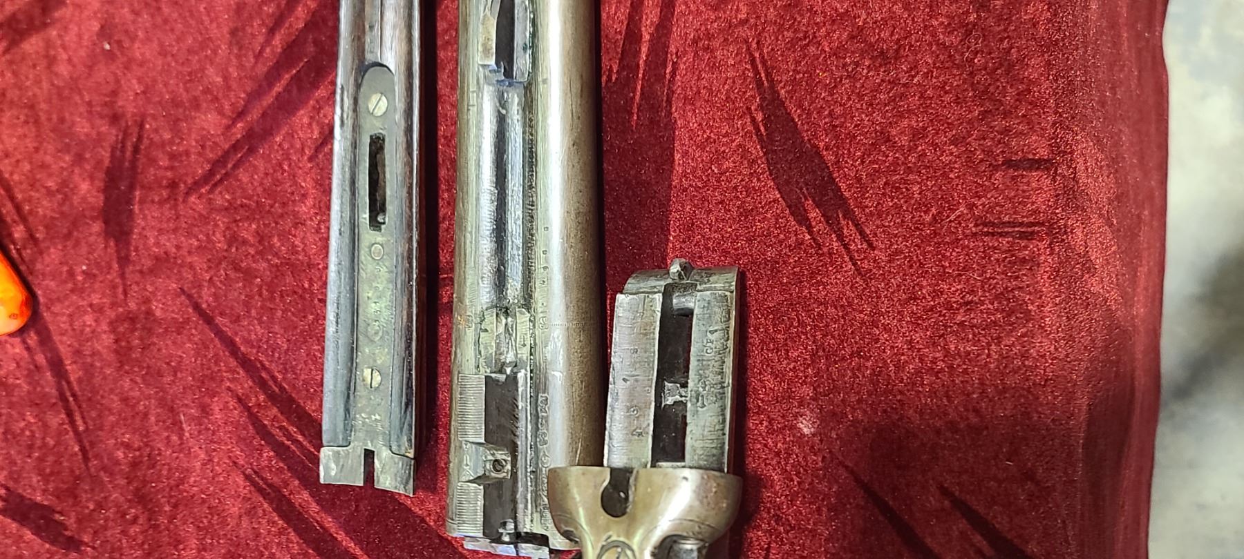 DOUBLE HAMMER SHOT GUN WALL HANGER/PARTS GUN PARTS MISSING 28 INCH BARREL (367)