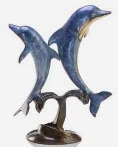 DOUBLE JUMPING DOLPHINS BRONZE SCULTURE - 9.5"H 7"W 3.5 "D - GREAT ATTENTION TO DETAIL - BEAUTIFUL FINISH - LOST WAX CAST