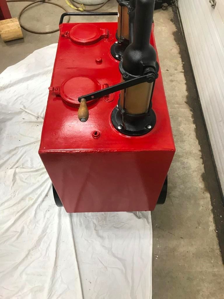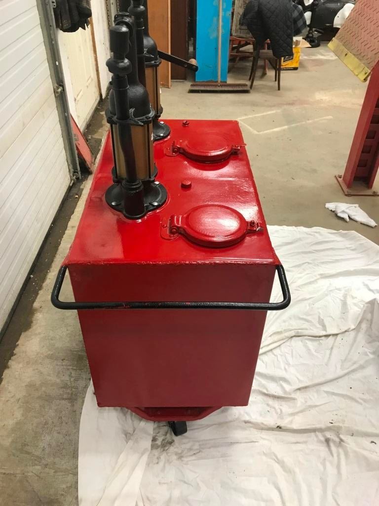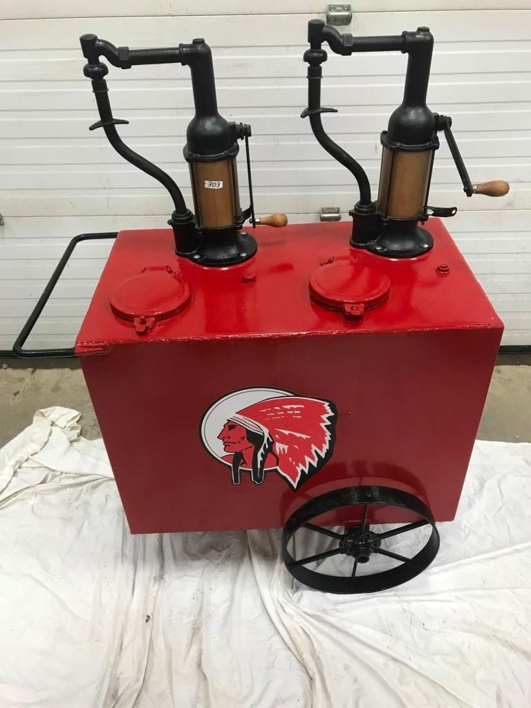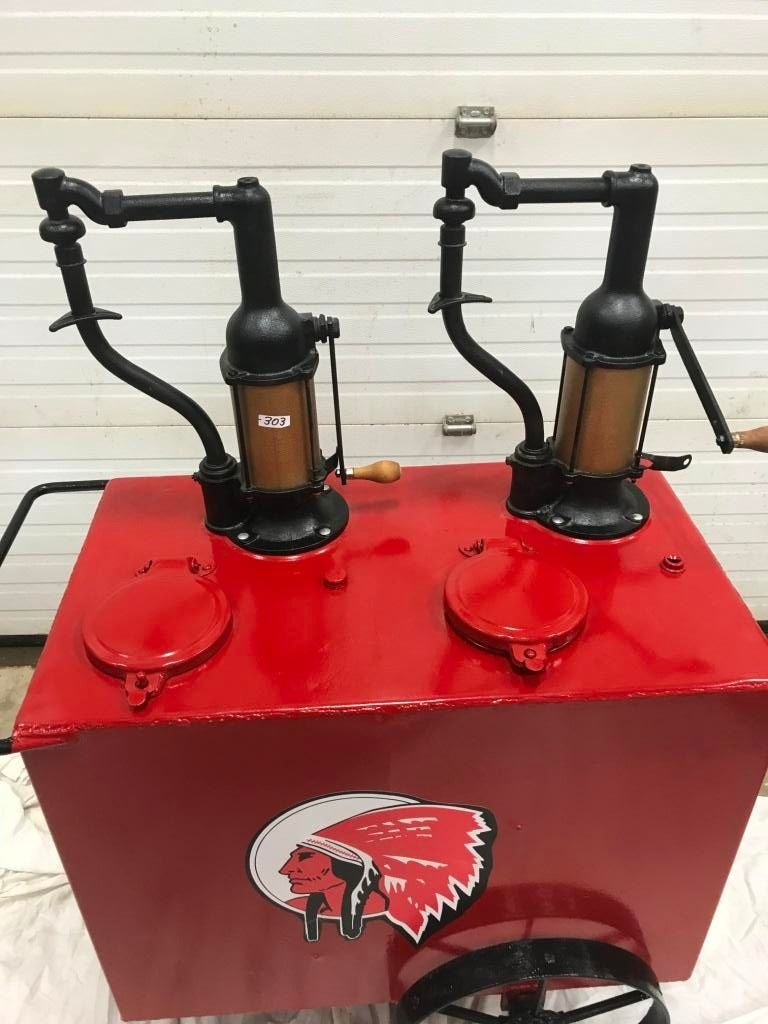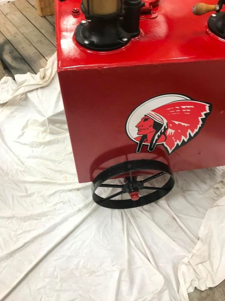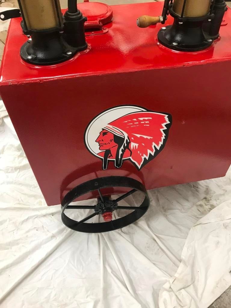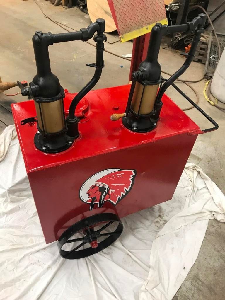 DOUBLE OIL LUBESTER ON WHEELS, REDONE TO RED INDIAN