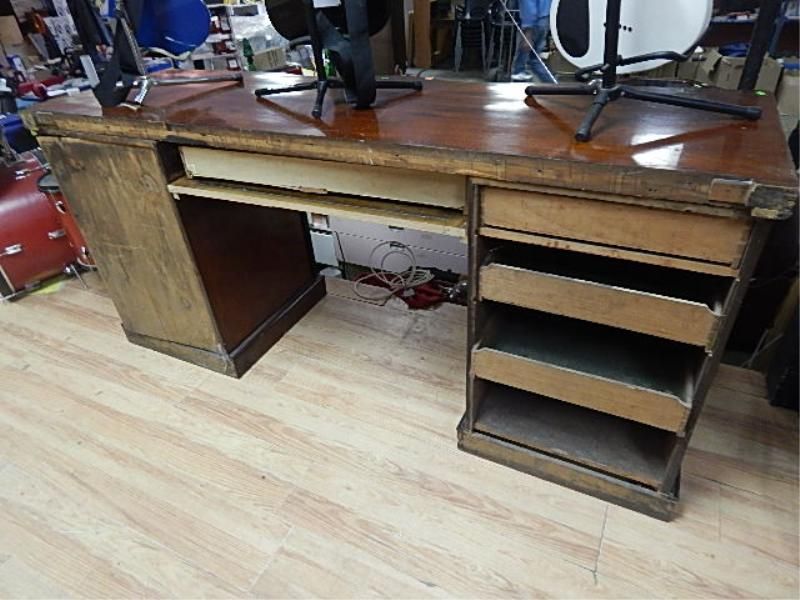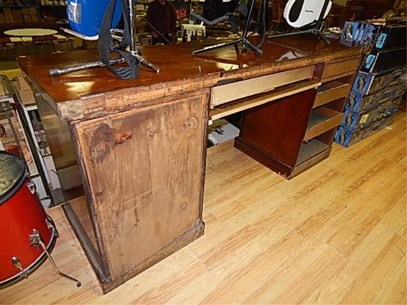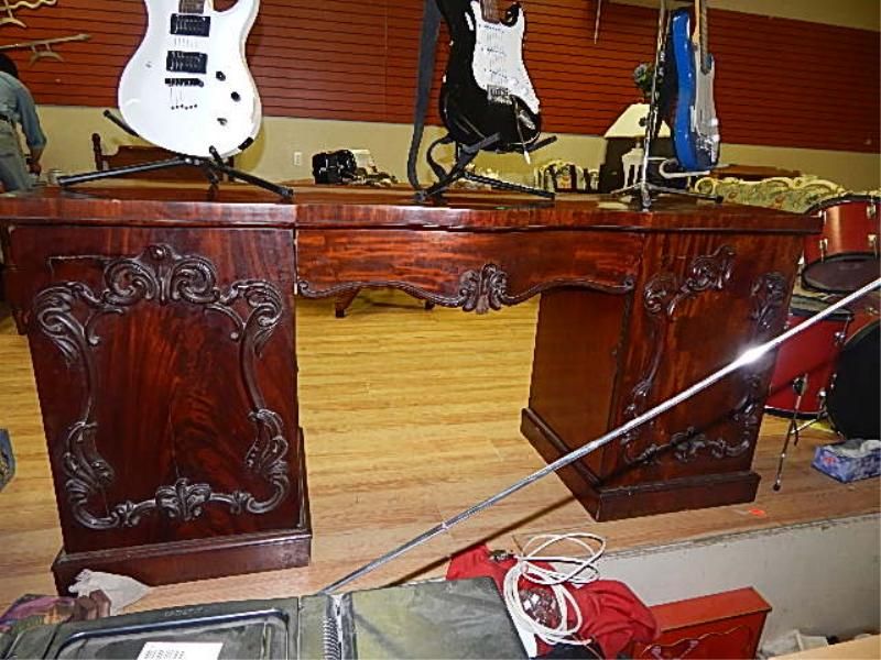 DOUBLE PEDESTAL ORNATE DESK - 2 DOORS WITH DRAWER BEHIND - as-is