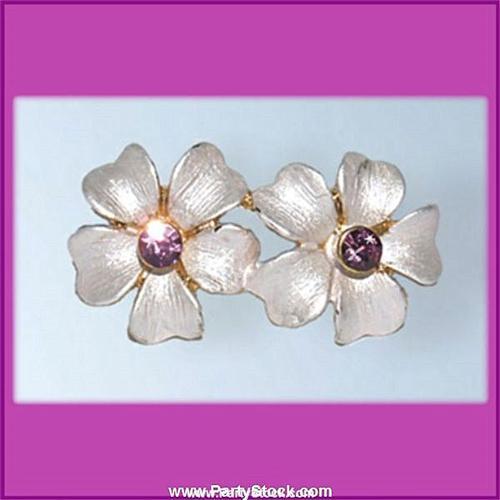 DOUBLE PLUMERIA PIN BROOCH 24K GOLD CRYSTAL SWAROVSKI