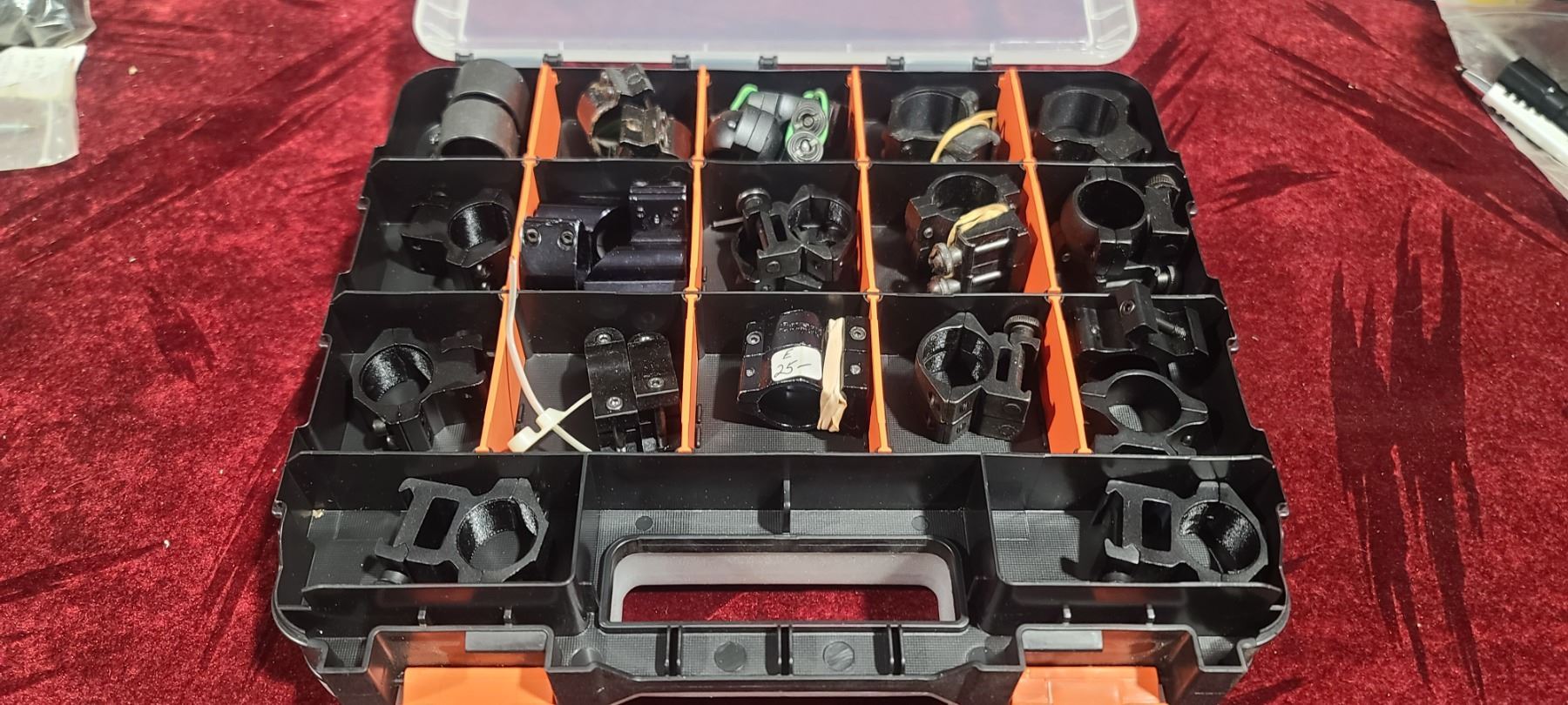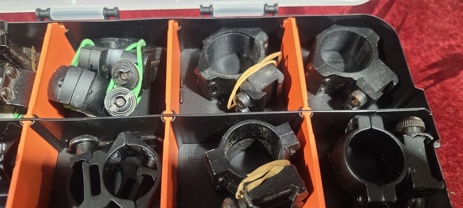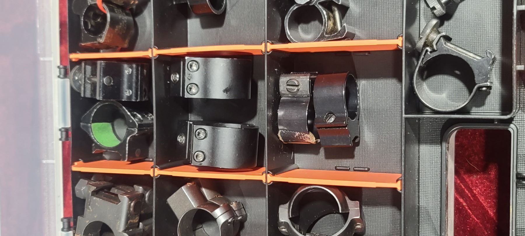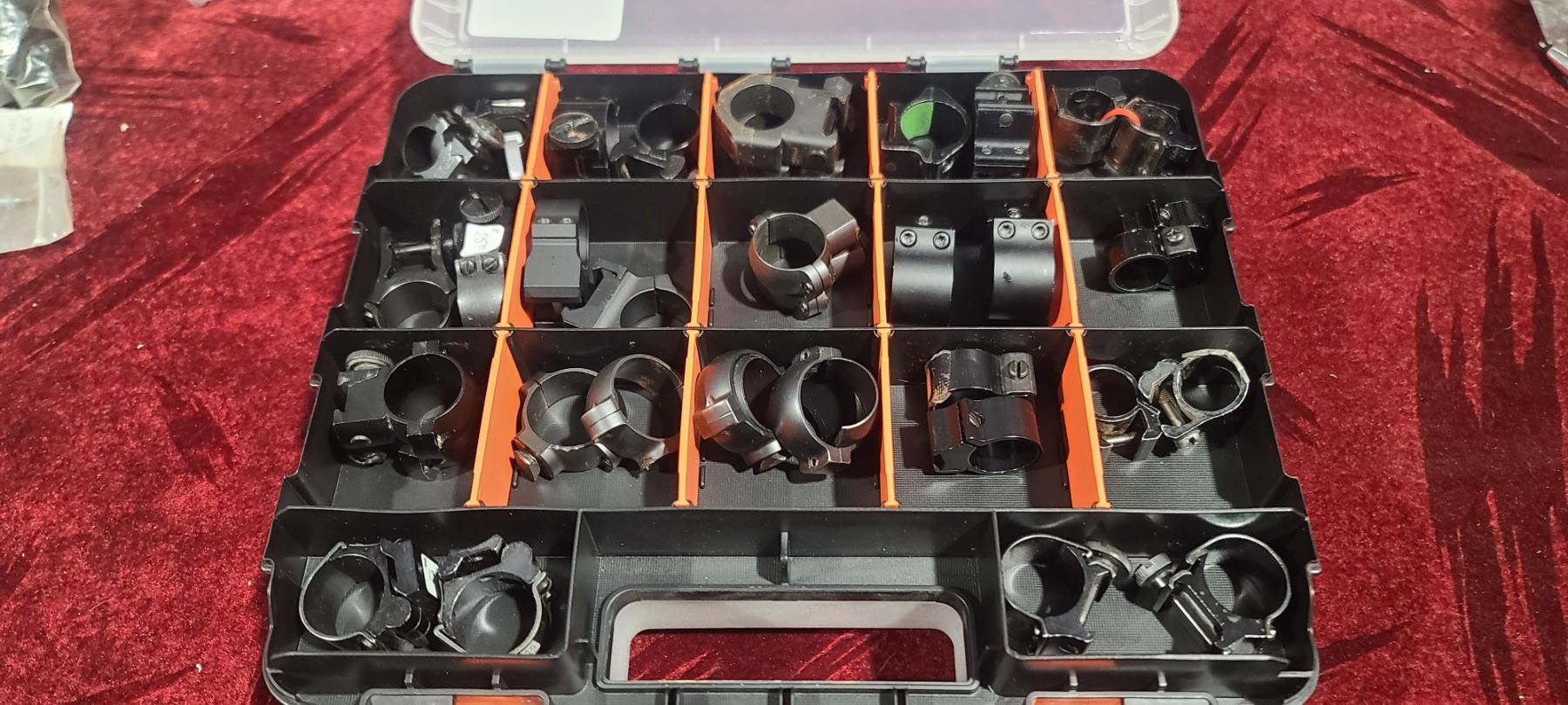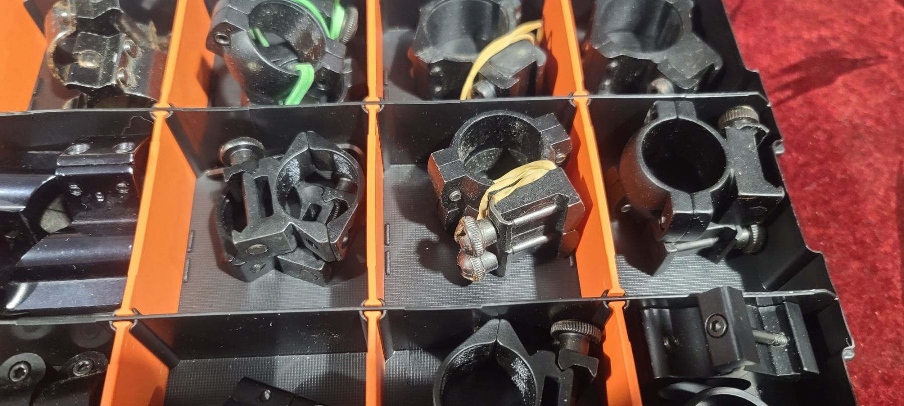 DOUBLE SIDED PARTS TRAY FULL OF SETS OF RINGS