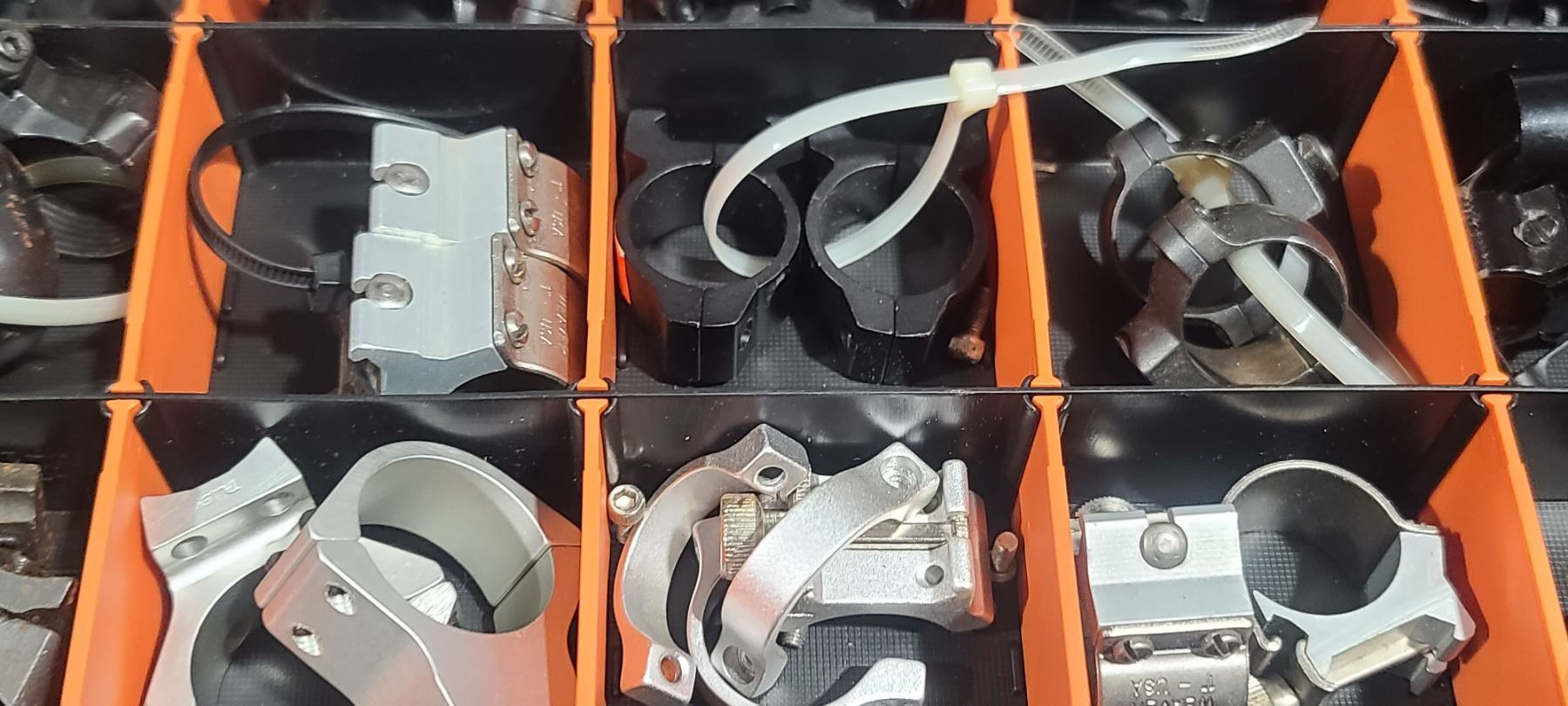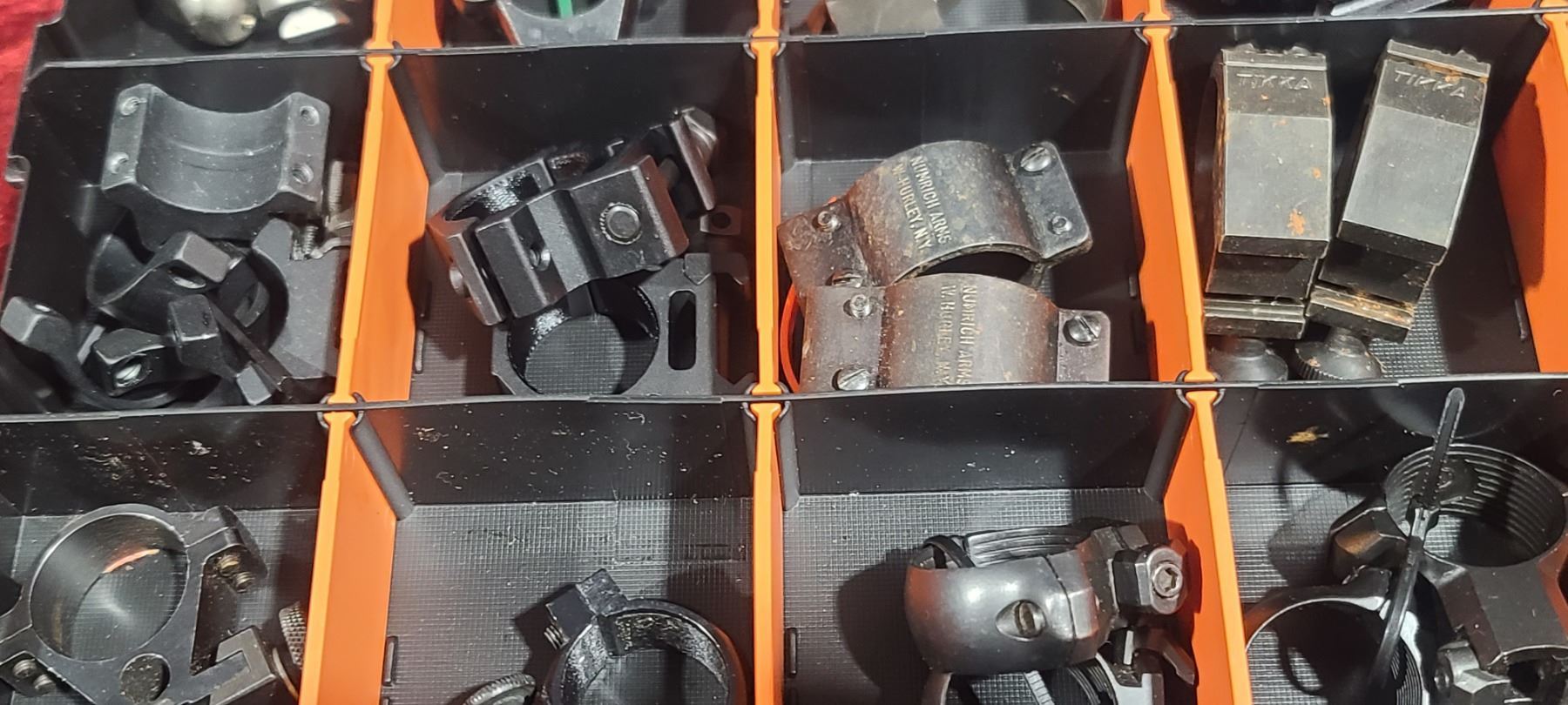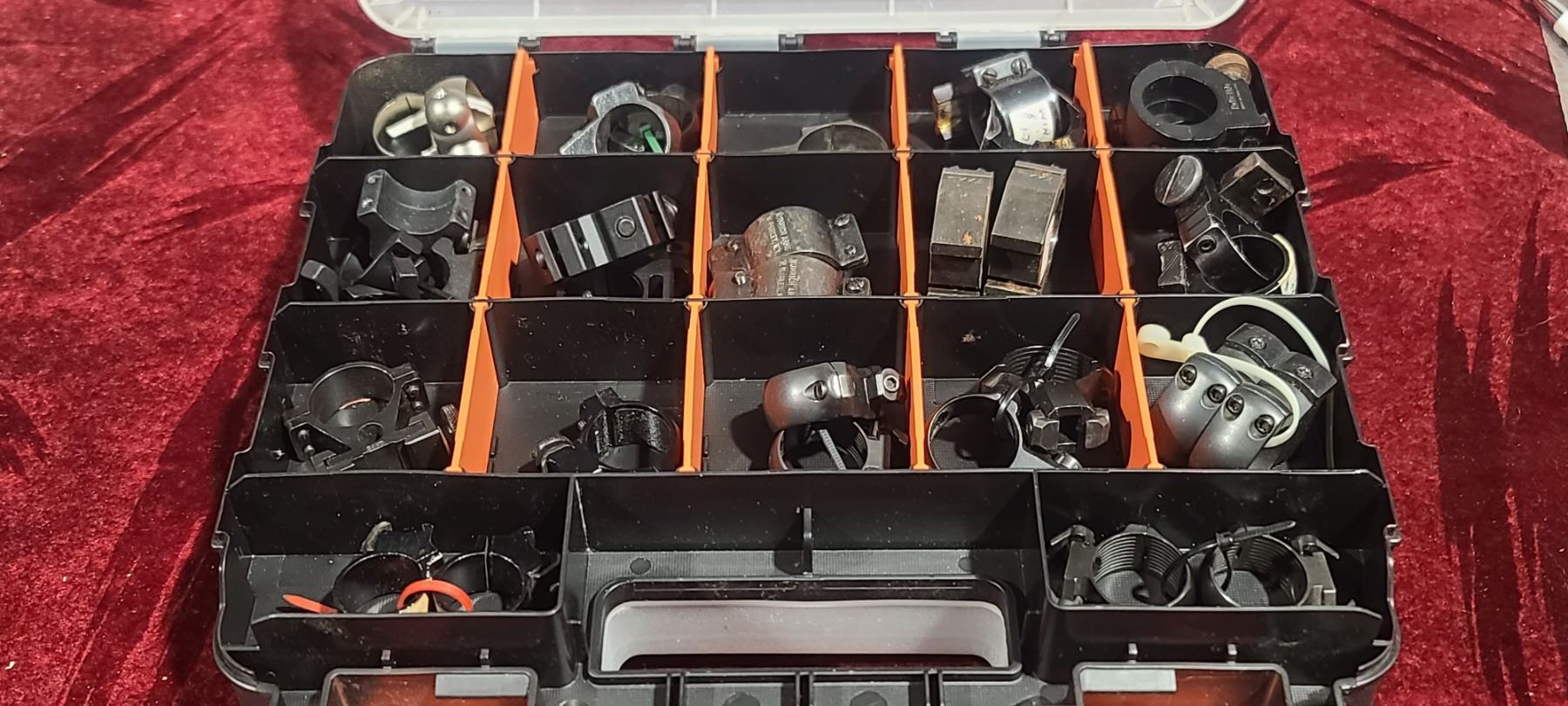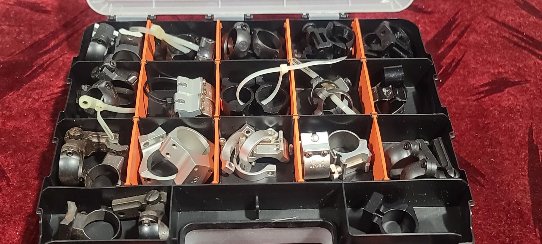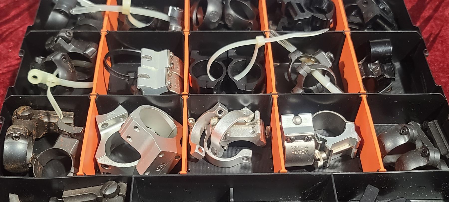 DOUBLE SIDED PARTS TRAY FULL OF SETS OF RINGS