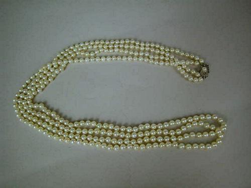 DOUBLE STRAND CULTURED PEARL NECKLACE, set with white gold clasp set with one pearl, 16"l