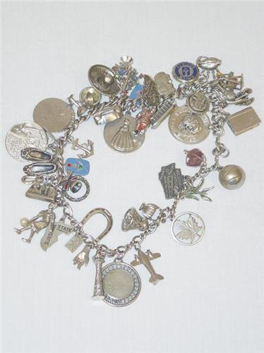 DOUBLE STRAND STERLING CHARM BRACELET W/ (42) SILVER CHARMS (APPROX. 4.32 TROY OZ.)