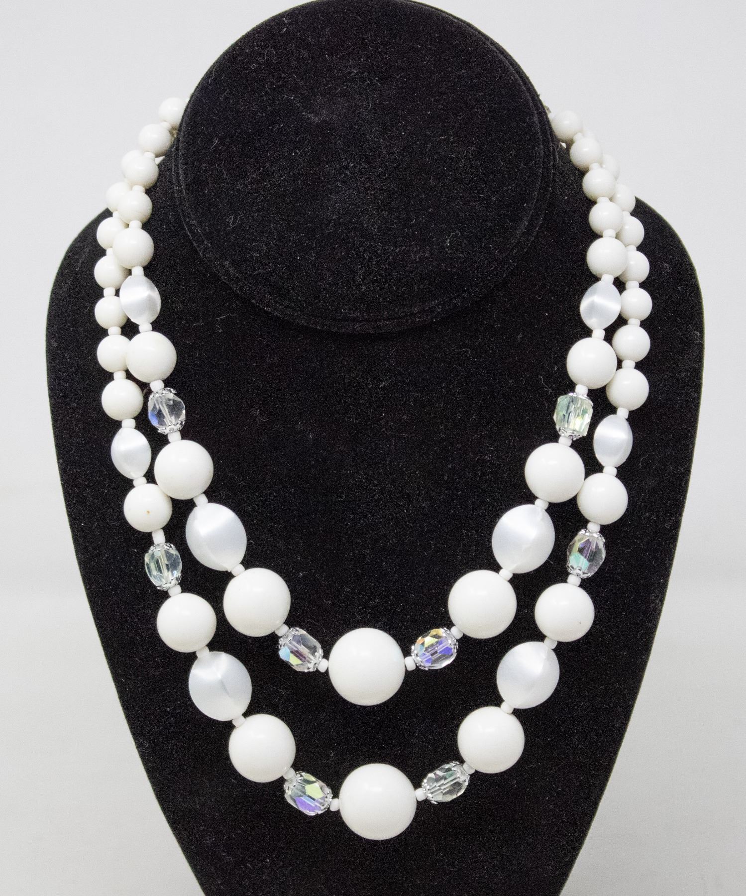 DOUBLE STRAND WHITE BEADED NECKLACE