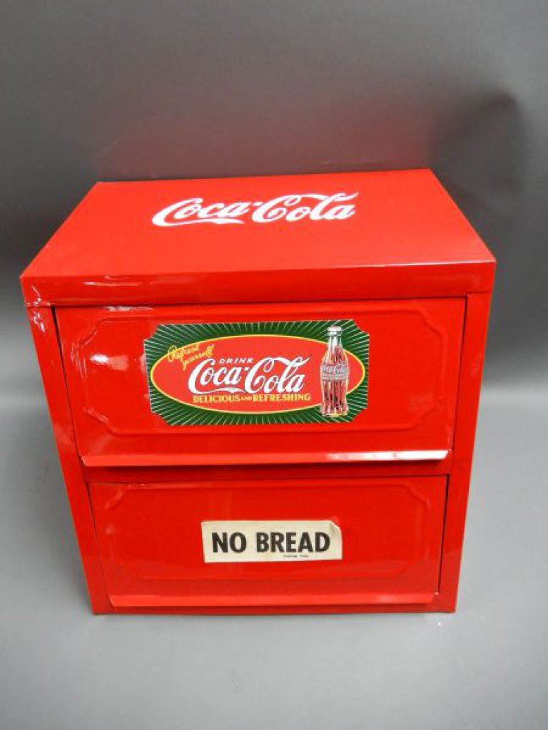 DOUBLE TIER BREAD BOX- RESTORED TO COCA-COLA 15" X 13" X 14" LOCATION: SODA SHOP