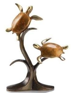 DOUBLE TURTLE BRONZE SCULPTURE - 9.5"H 7"W 4.5 "D - GREAT ATTENTION TO DETAIL - BEAUTIFUL FINISH - LOST WAX CAST