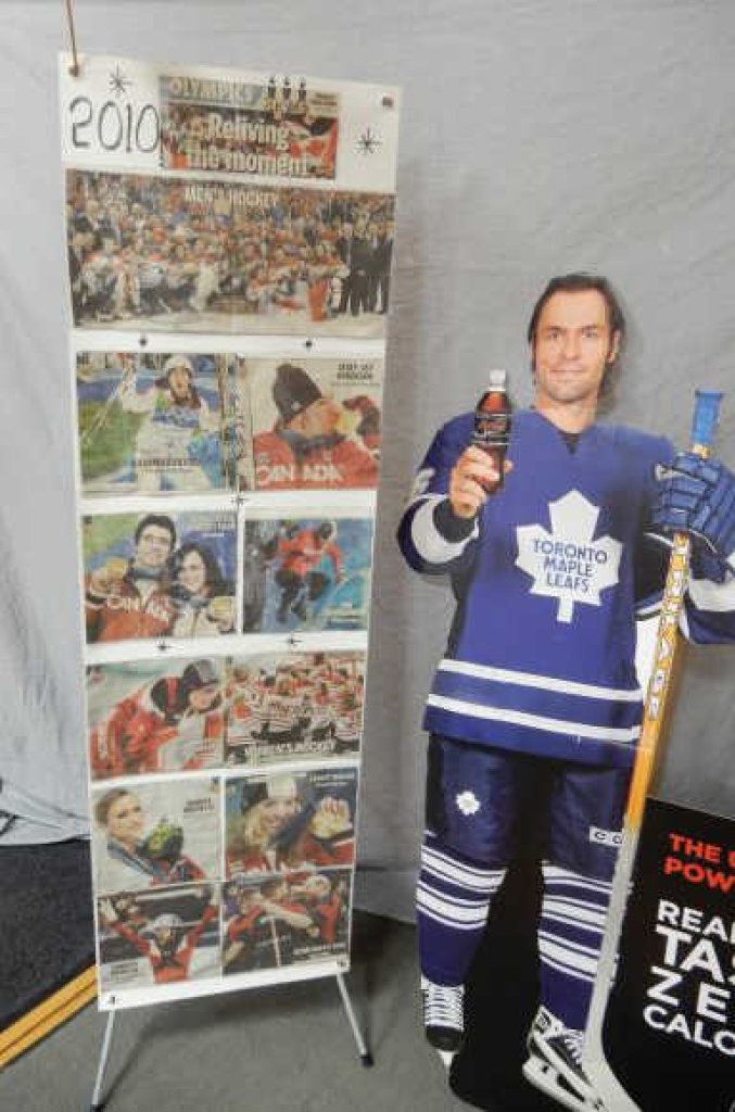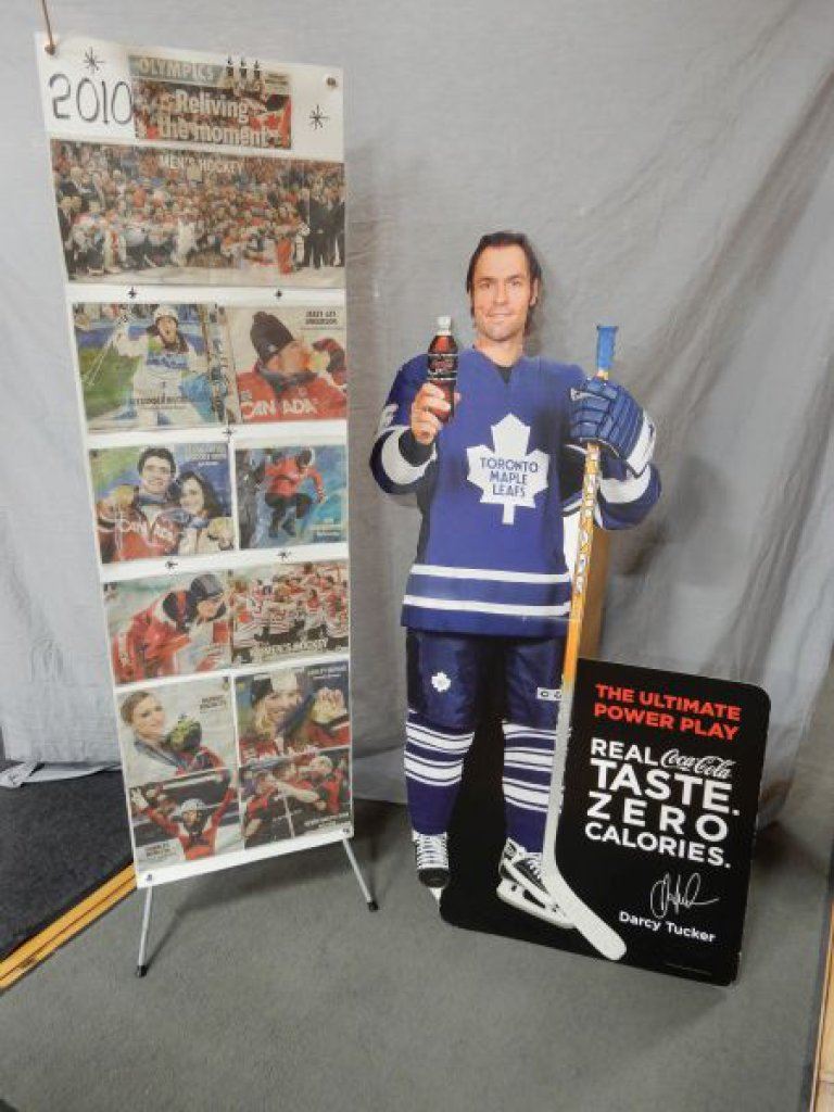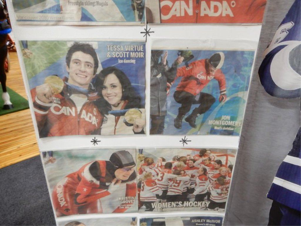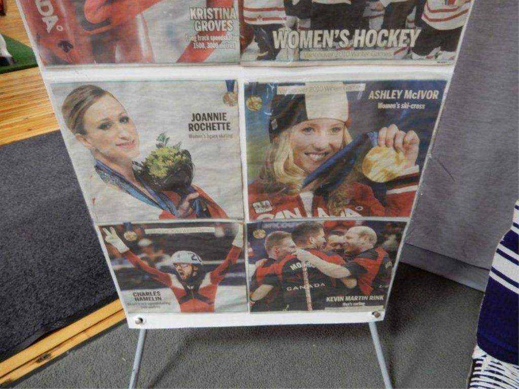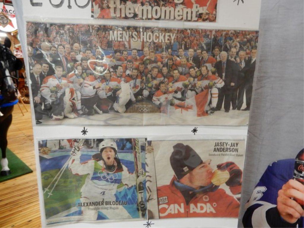DOUG GILMORE CARDBOARD CUT OUT & OLYMPIC DISPLAY 2010 VARIOUS PAPER CLIPPINGS LOCATION: UPPER BACKROOM