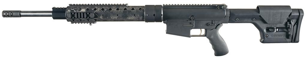 Produced with a flat top gas block and upper receiver, with a 3-chamber muzzle brake on a Fulton Arms National Match barrel (1-12" twist, stainless steel), a carbon fiber free-floating tubular handguard with four PRI brand rails (8" at 12:00, 3 1/2" at 3, 6 and 9), drop-in gold trigger pack, Ergo Grip brand rubberized pistol grip, a Magpul PRS adjustable buttstock and one Magpul PMAG 20-round magazine with dust cover.
