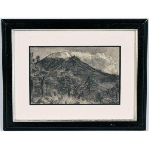 1 DR ATL (GERARDO MURILLO) Mexican, 1875-1964 Volcano 9"x14" charcoal on paper CONDITION REPORT: a few small scattered foxing. PACKING AND SHIPPING (excluding insurance) by Fairfield Auction to points within the Continental U.S.A. and Canada (all other international must be handled by 3rd party shipper) $40.