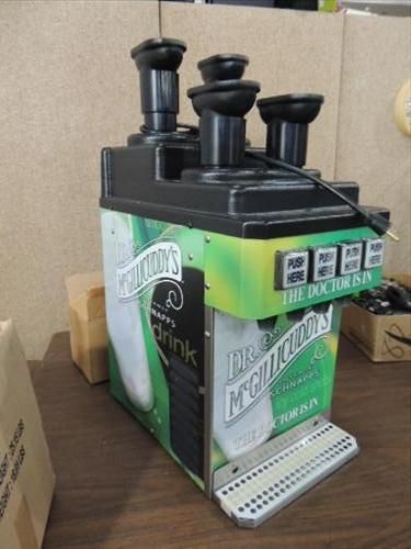 DR MCGILLICUDDY'S 4 BOTTLE SCHNAPPS DISPENSER. LIQUOR DISPENSER. INTERNATIONAL CARBONICS MODEL CS-2. NEVER USED, IN ORIGINAL SHIPPING BOX. AS SHOWN. VIEW PICTURE FOR DETAIL.