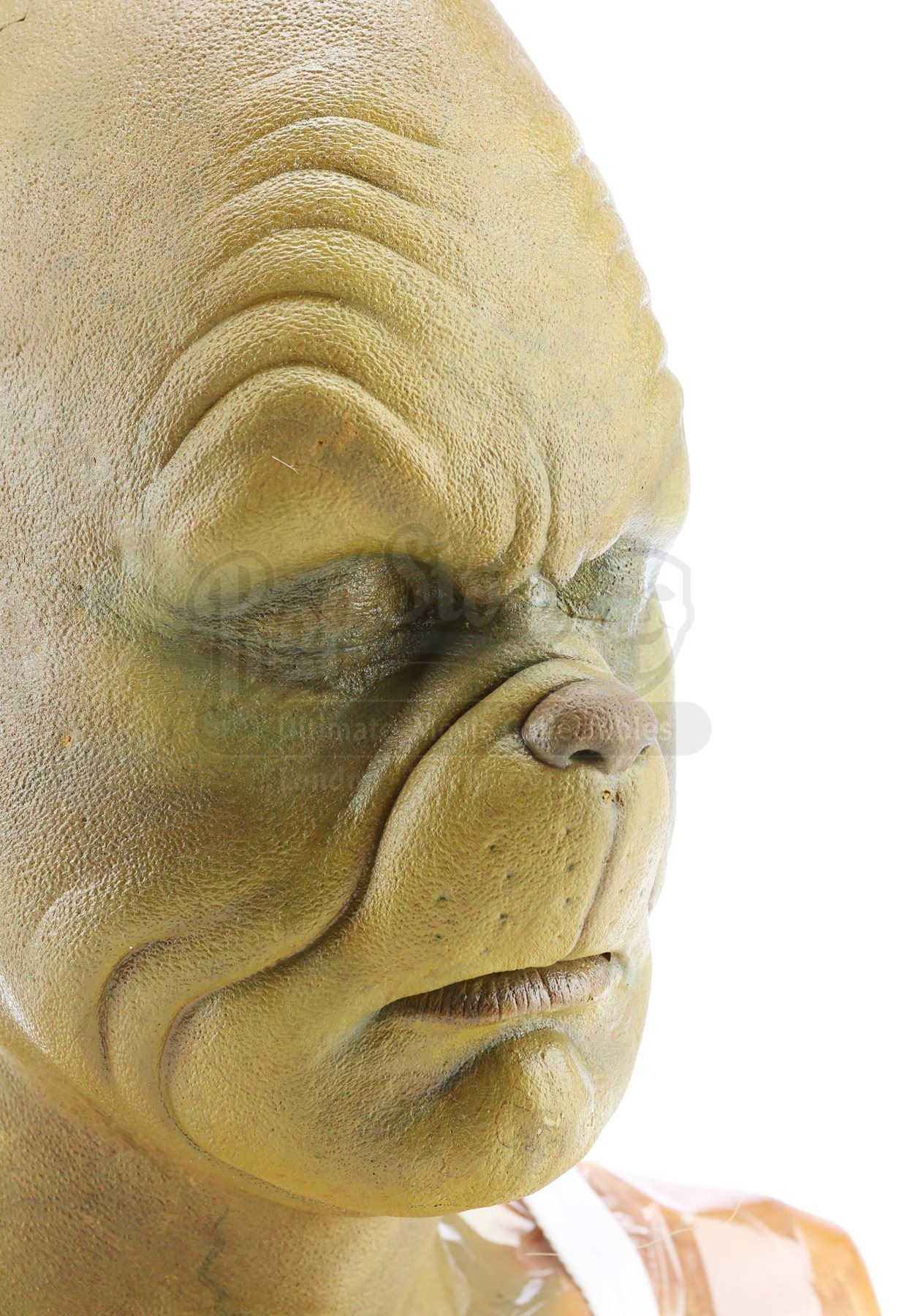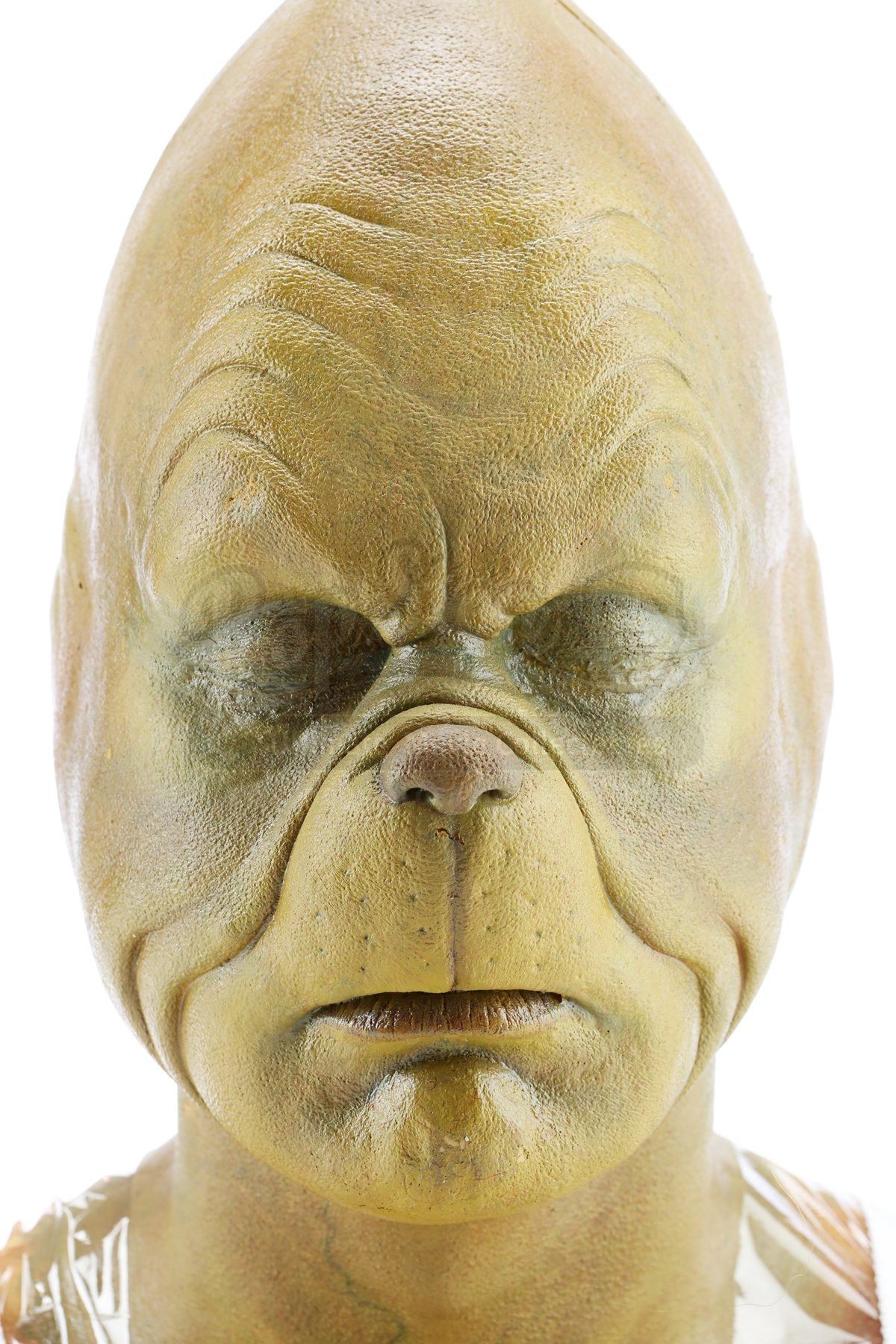 A Grinch (Jim Carrey) make-up test bust from Ron Howard’s live-action adaptation of Dr. Seuss’ How the Grinch Stole Christmas. This pre-production bust was created during early tests, and was designed by legendary make-up artist Rick Baker.