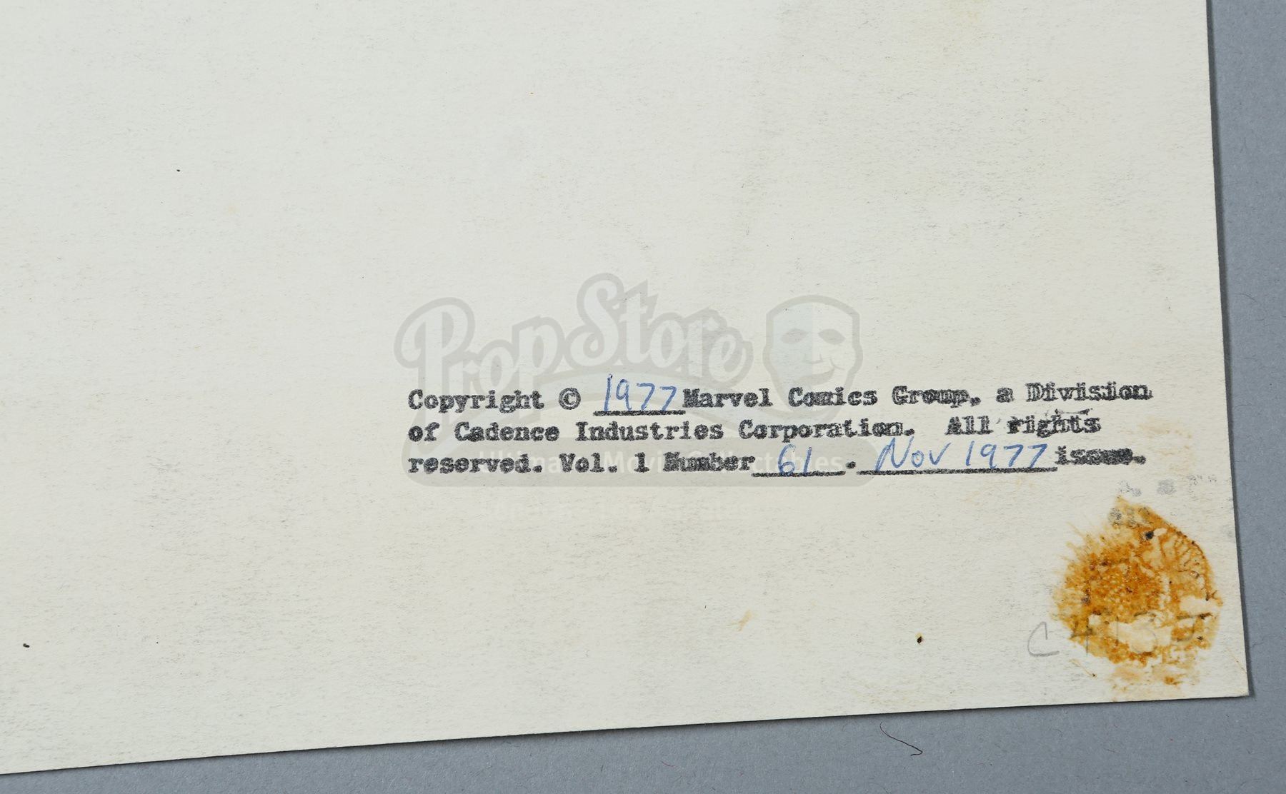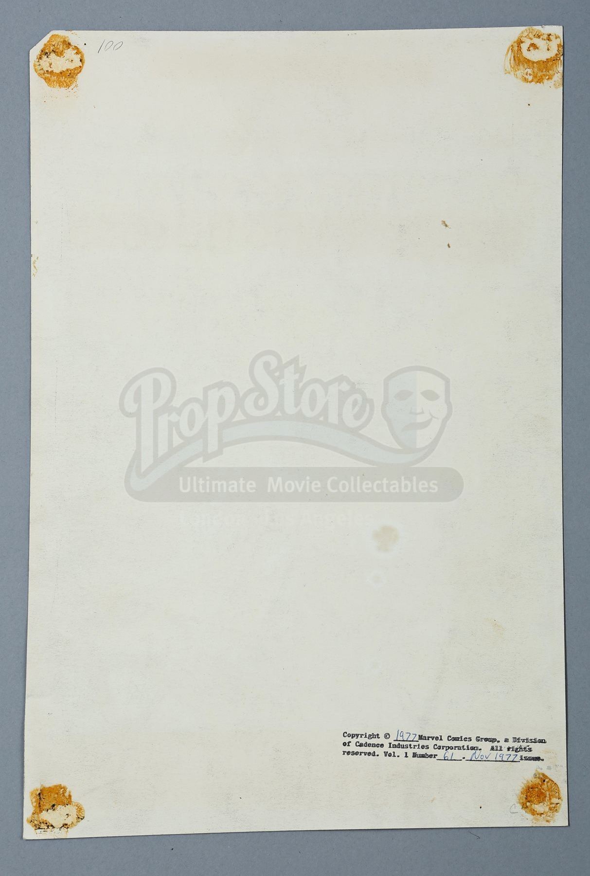 11.2. In the catalogue descriptions, Prop Store takes steps to identify and provide provenance for Lots offered at auction. In many cases, the Lots offered were used in or in conjunction with motion pictures or other programmes and information is furnished in order to fully identify and describe the Lot offered at Auction, including photographs and illustrations. Prop Store in no way claims any connection to or relationship with the producers of the motion picture or other programme. In all cases, the use of the titles or other elements of a motion picture or other programme is for informational purposes only.