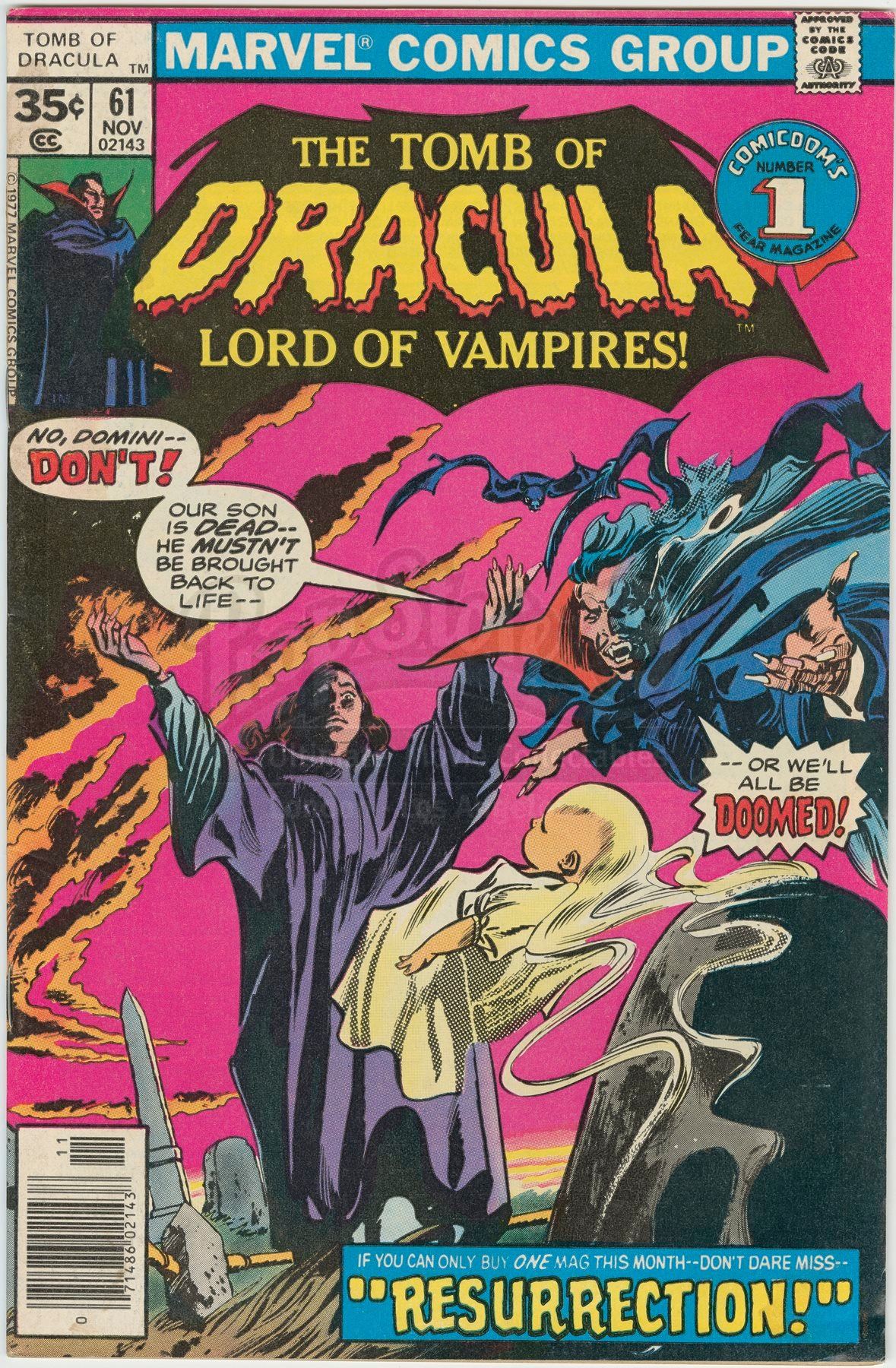 Included with the lot is a reference copy of Tomb of Dracula #61, the comic book in which this art was originally published. The artwork shows tape residue and minor staining to the front and back, but remains in very good condition. Dimensions: 40 cm x 27 cm (15 ¾” x 10 ½”)