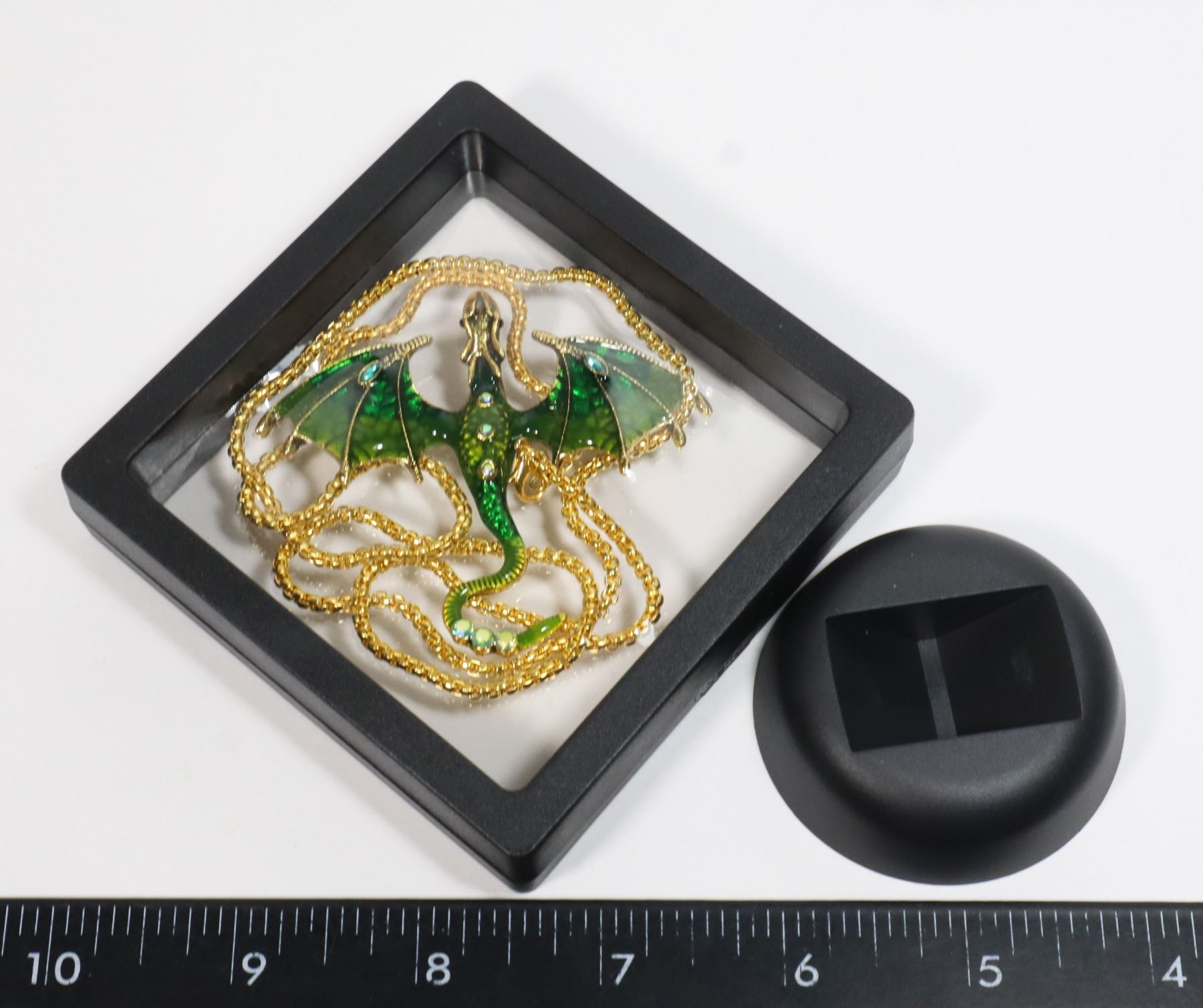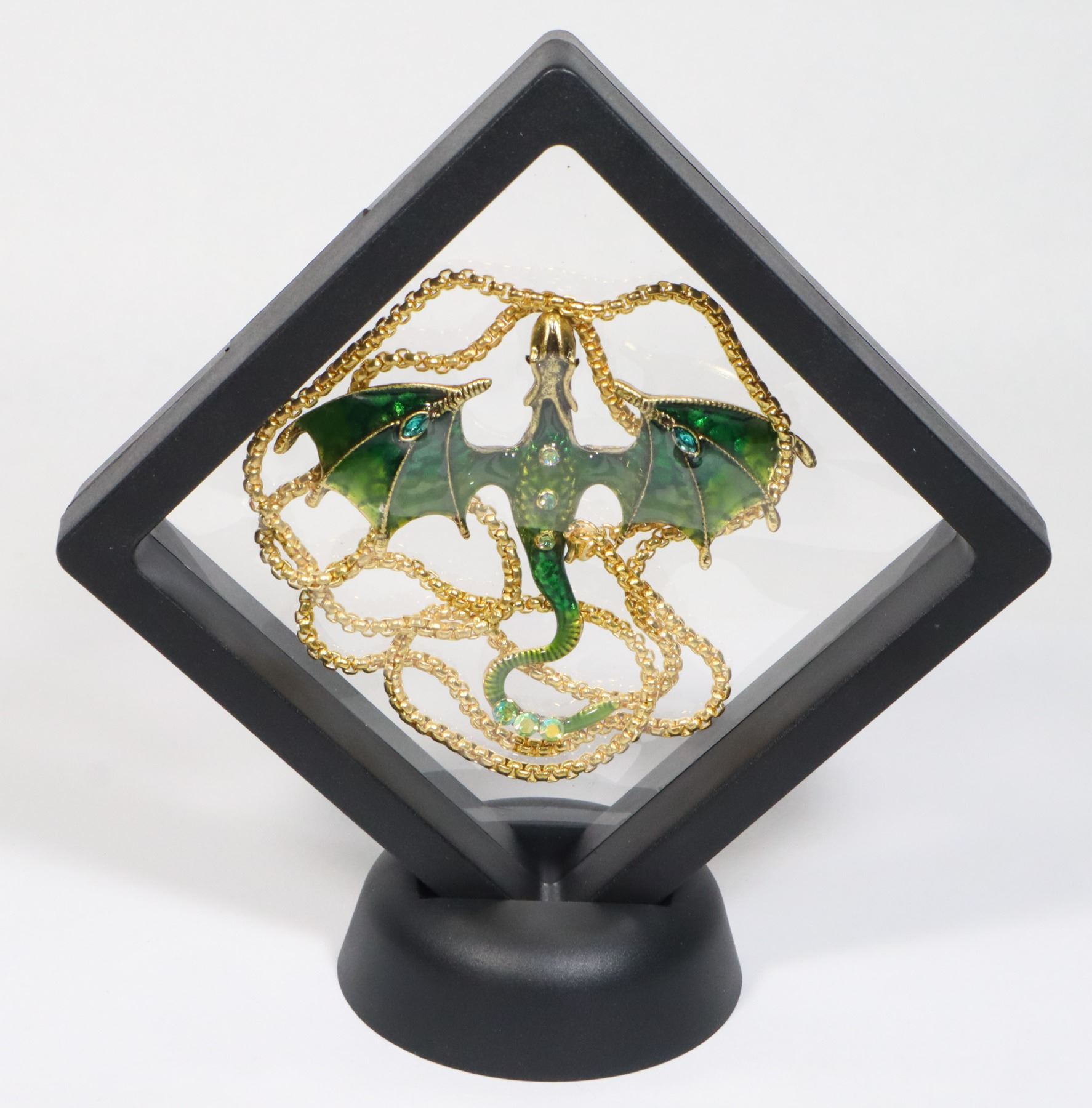 DRAGON NECKLACE IN FLOATING DISPLAY CASE W/ STAND