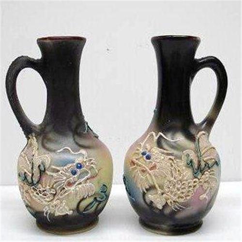 LOVELY DRAGON WARE MORIAGE OIL & VINEGAR VESSELS, Very fine condition, Each standing about 5" high, US Buyer to pay 8.00 for shipping plus insurance.THANKS.