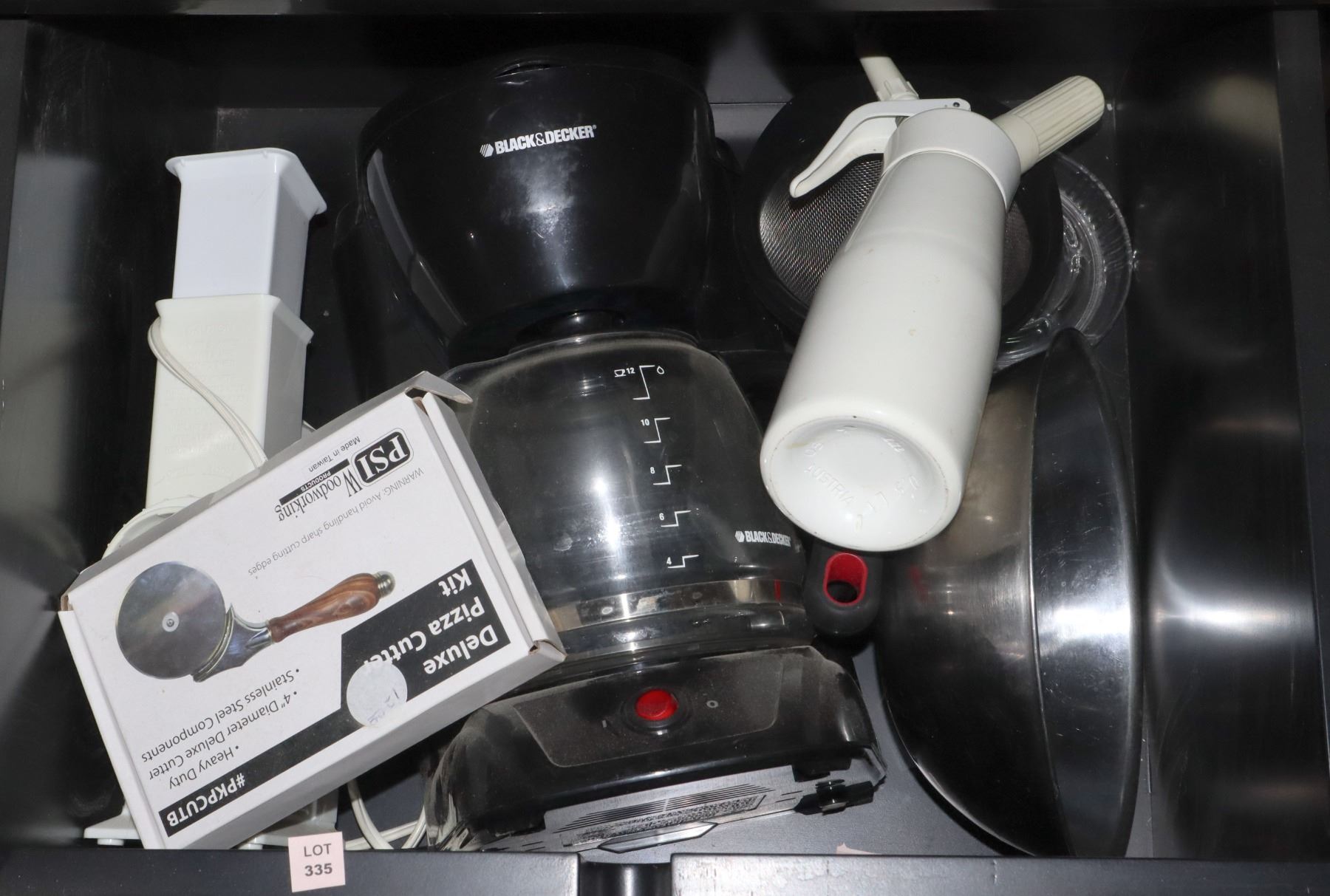 COFFEE MAKER. WHIPPED CREAM DISPENSER. DRAWER NOT INCLUDED