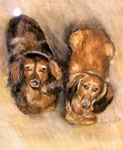 DRAWING, LINDSY RUPPEL'99, Polychrome portrait of two dachshunds, 8 3/4"h x 7 1/4"w