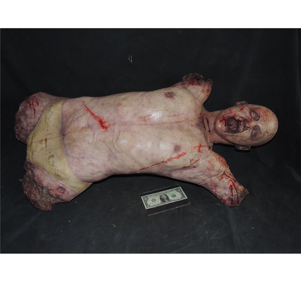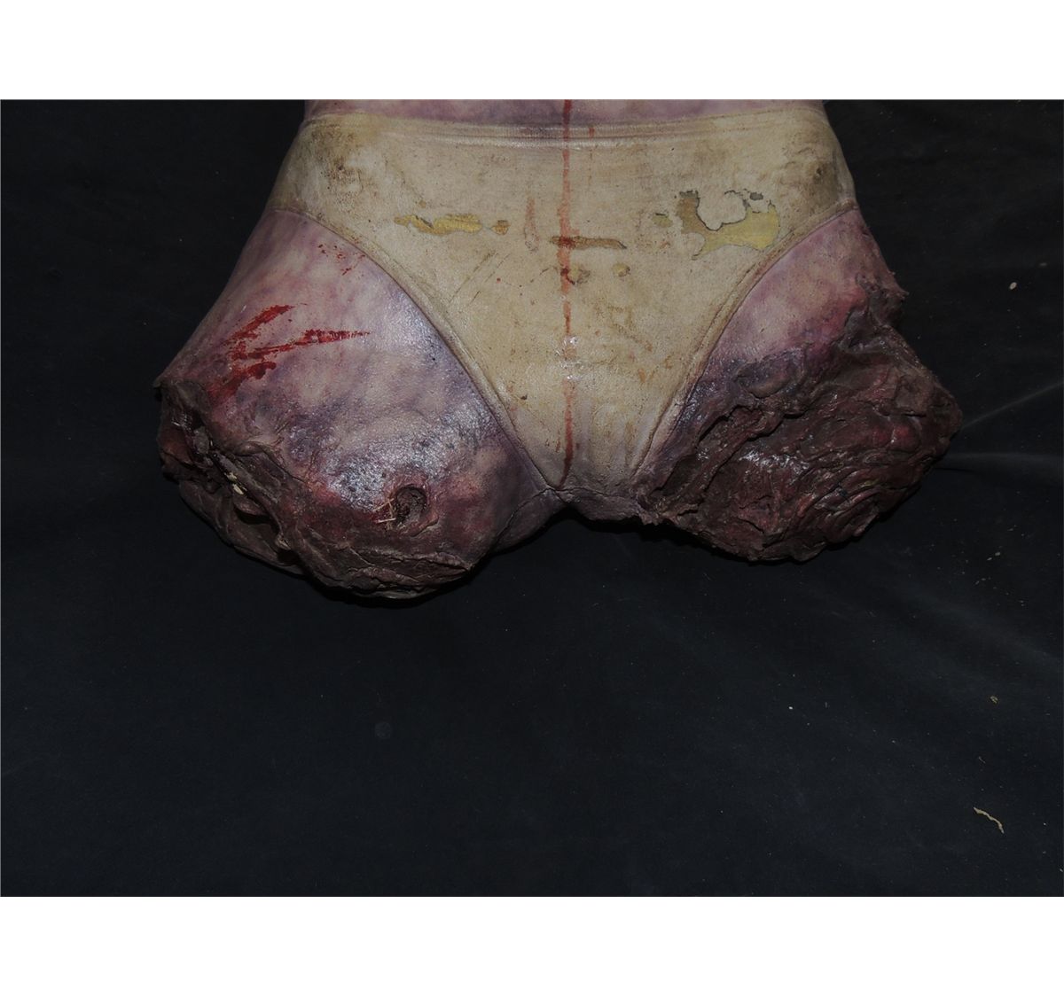 DRAWN & QUARTERED FEMALE BODY WITH EXCELLENT GORE AT ARM & LEG STUMPS & SLIT THROAT.