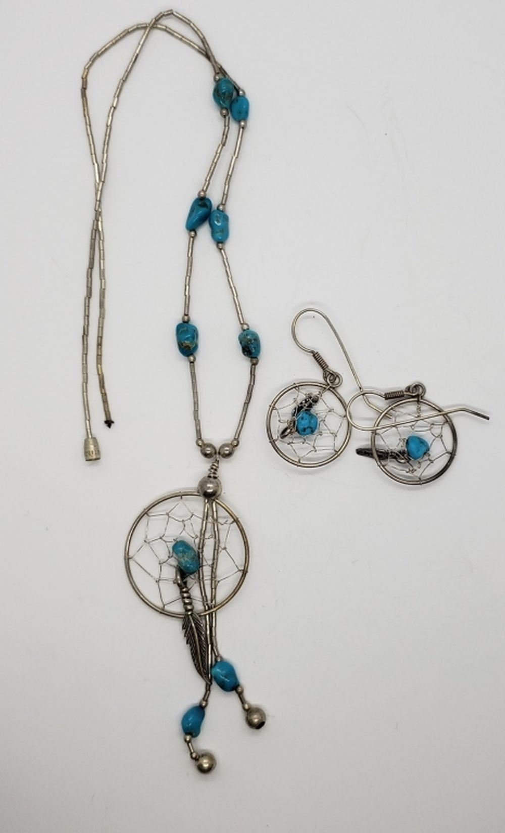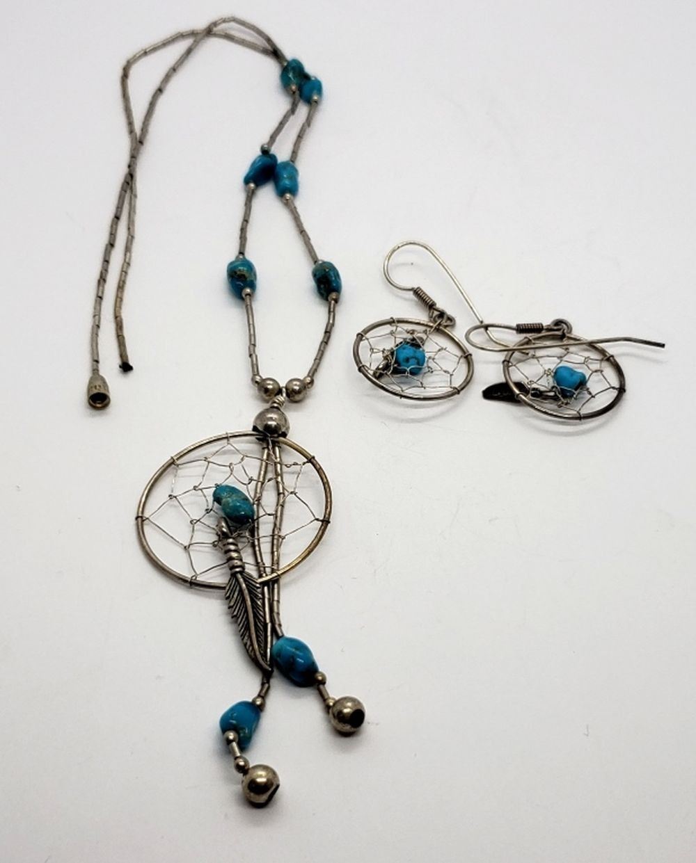 w/TURQUOISE ACCENTS, NECKLACE MISSING CLASP- 7.1 DWT