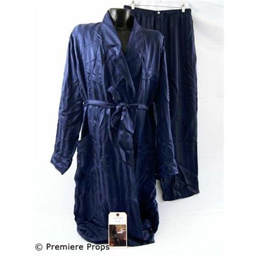 DREAMGIRLS - Curtis Taylor, Jr. (Jamie Foxx) flashed style even in his sleep! This royal blue, self stripe silk "Intimo" robe with matching royal blue, self stripe silk "Intimo" pajama pants was worn onscreen by Curtis Taylor, Jr. (Jamie Foxx). Do not miss out on this opportunity to own such a suave piece from the smash hit musical, Dreamgirls! This costume comes complete with the original wardrobe tag. (DG1497)