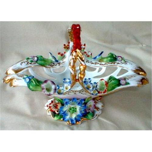 Elaborately decorated antique Dresden porcelain basket. Footed