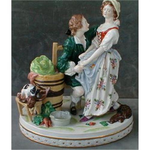 This figural grouping could be titled - Seduction in the Kitchen. A great Dresden-style