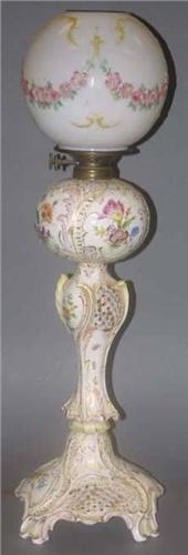 DRESDEN HAND PAINTED PORCELAIN LAMP with associated shade height: 24"