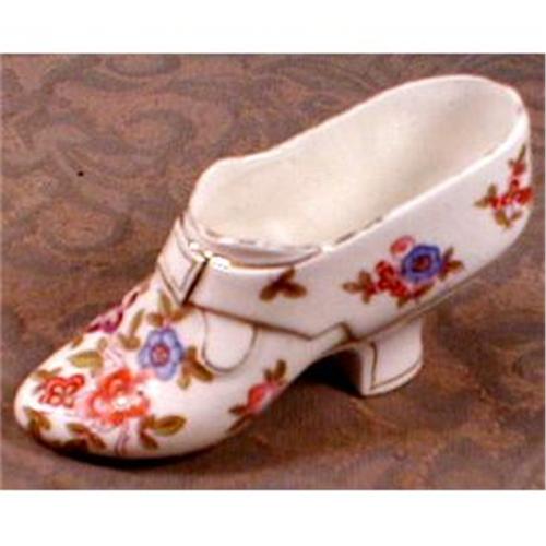 Very pretty little porcelain shoe with hand colored floral patterns.
