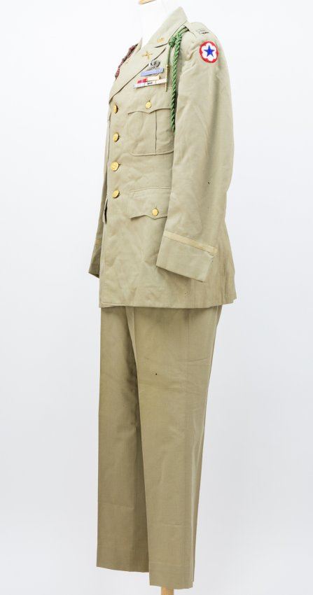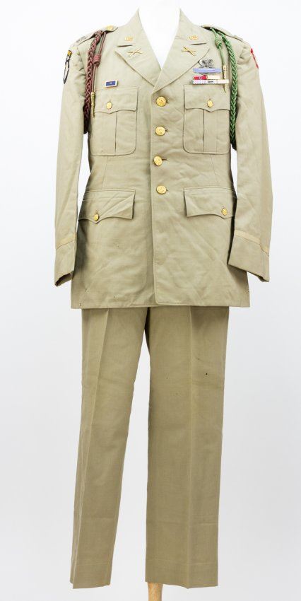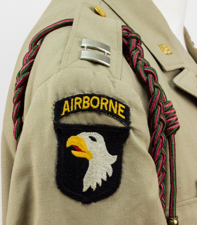 DRESS UNIFORM AND CAPTURED NAZI FLAG FROM ESTATE OF 101ST AIRBORNE CAPT. WILLIAM W. WEBB