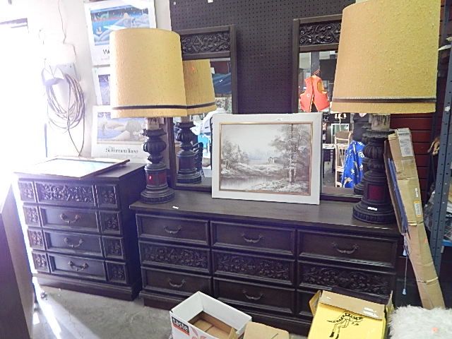 DRESSER (9 DRAWER) + DRESSER (4 DRAWER) + HEAD BOARD & 2 MIRRORS