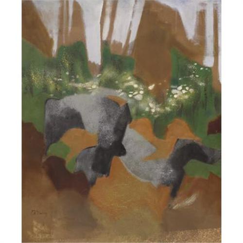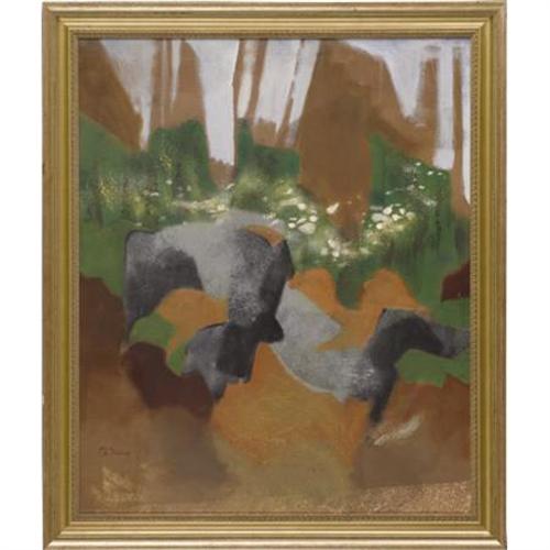 <B>Drew Deshong </B></I>(American)<BR><I>Cliffs Out Back</B></I>, 1969<BR>Oil on canvas<BR>29-3/4 x 24-5/8 inches (75.6 x 62.5 cm)<BR>Signed<BR> <BR><BR><b>Shipping:</b> Requires 3rd Party Shipping (<a target="_blank" href="http://www.heritageauctions.com/common/shipping.php">view shipping information</a>)