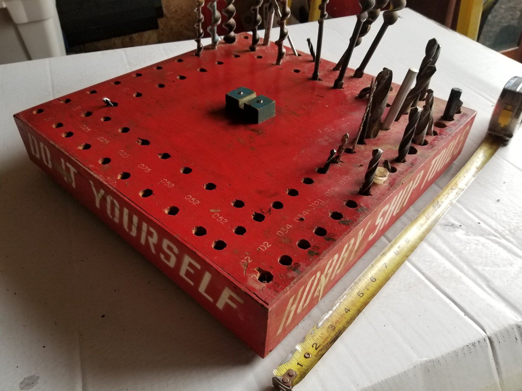 DRILL BIT COLLECTION ON HARDWARE DISPLAY STAND (USED)