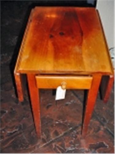 DROP LEAF TABLE, WILLIAM FETNER FROM HAMLET NORTH CAROLINA, KNOTTY PINE, SIGNED, ONE DRAWER. 36" X 2