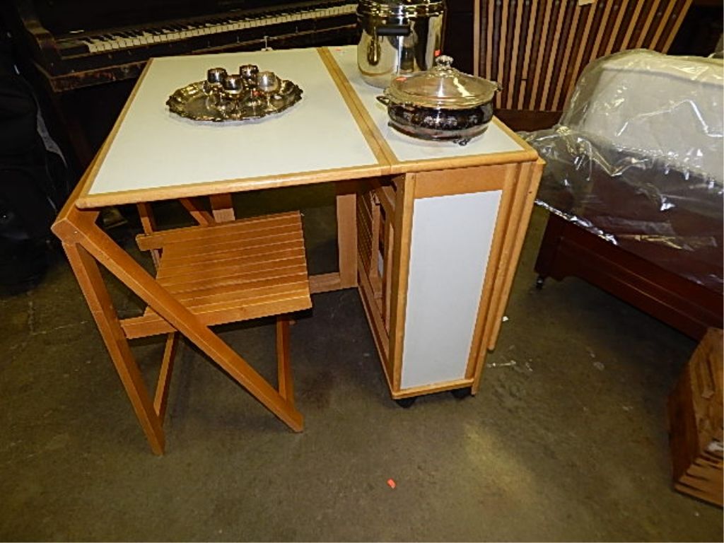 DROP LEAF WHITE TOP TABLE WITH 4 HIDDEN CHAIR INSIDE