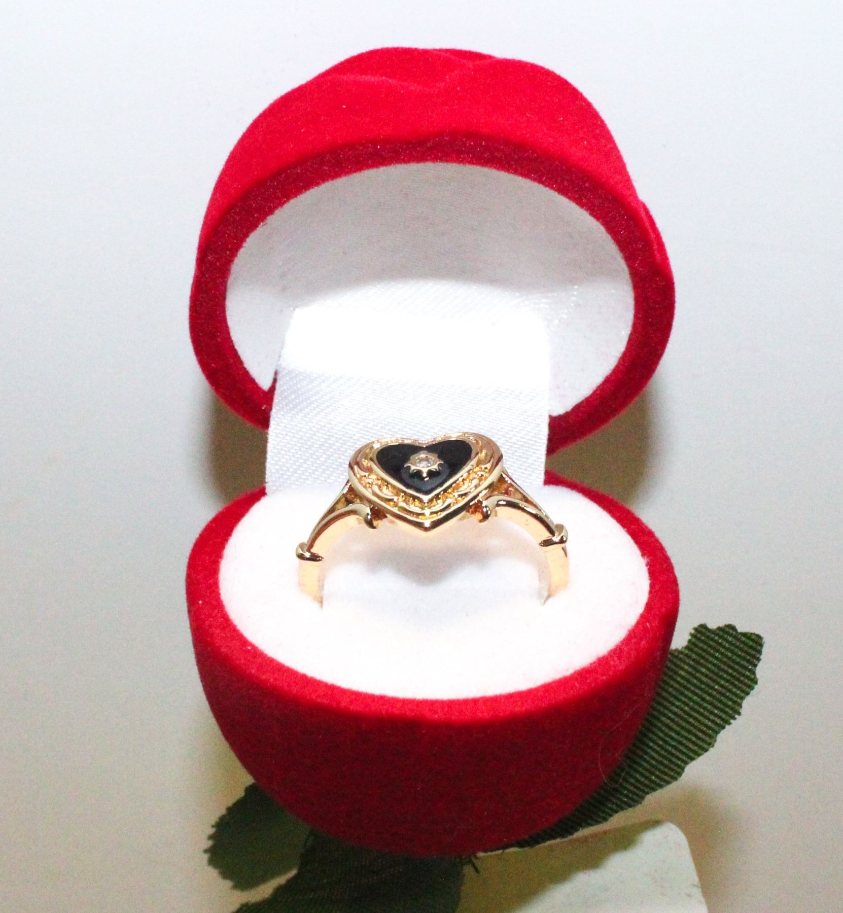 DROPPED HEART BLACK RING LIGHTWEIGHT SZ 8.5
