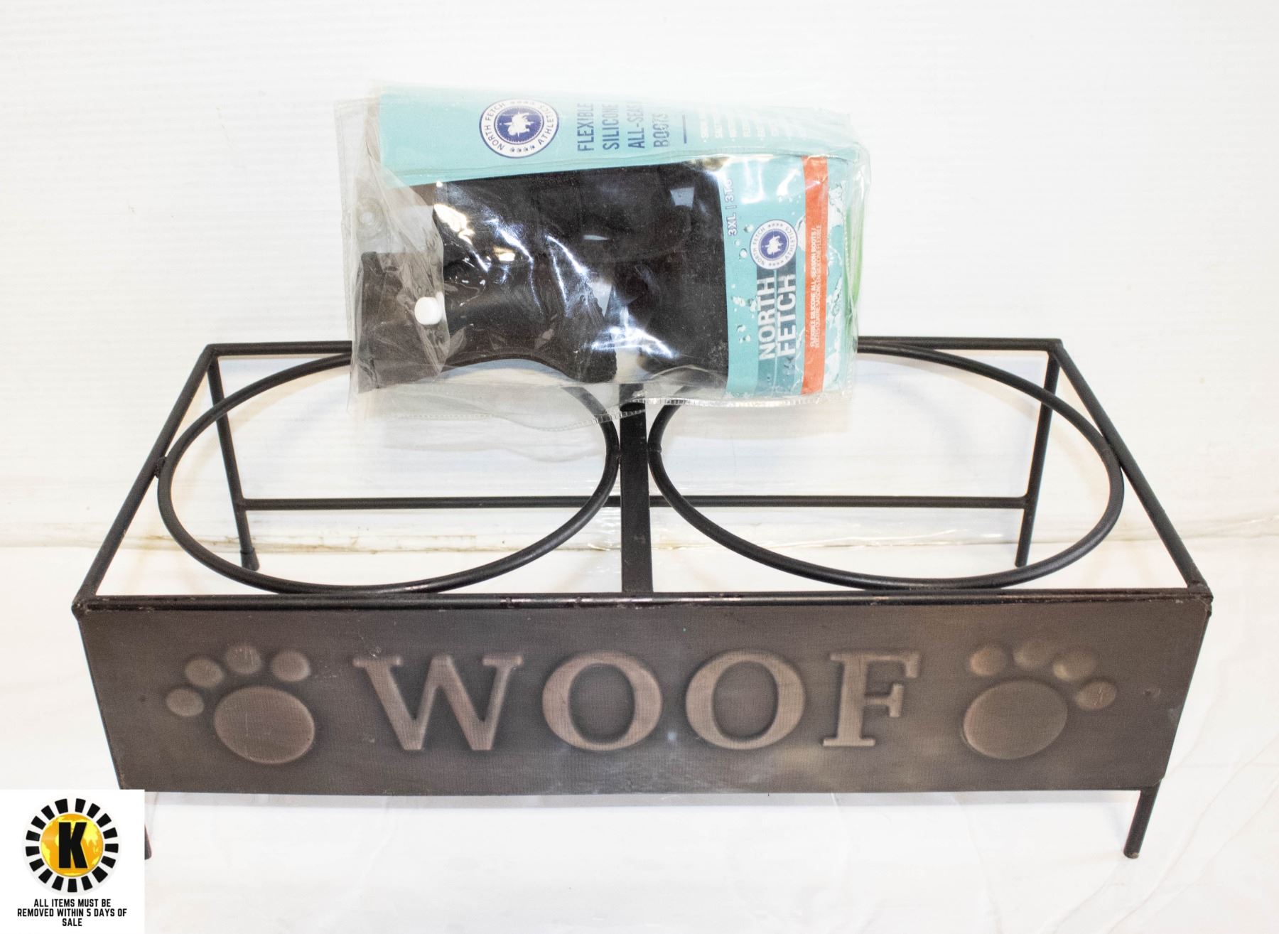 DUAL DOG DISH STAND W/SEASONAL DOG BOOTS