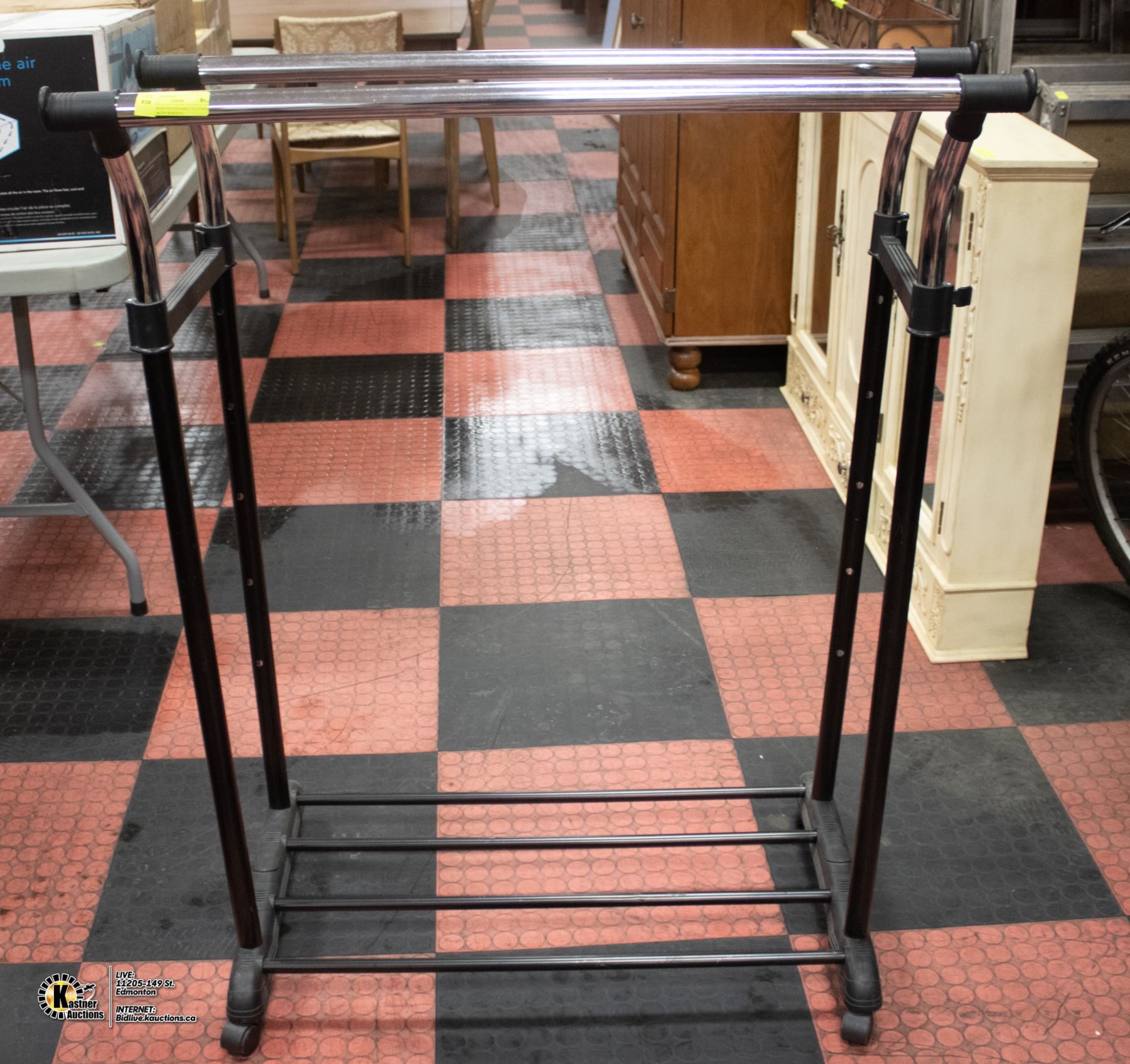 BLACK ADJUSTABLE STEEL DUAL ROD CLOTHES RACK W/WHEELS