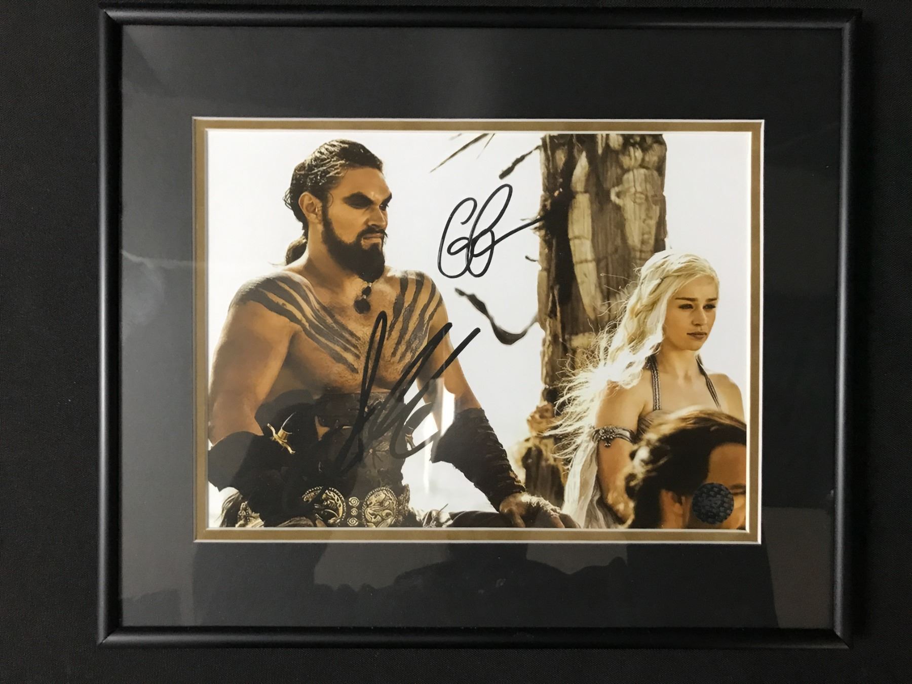 DUAL SIGNED AND FRAMED GAME OF THRONES 8X10 JASON MAMOA AND EMILIA CLARKE - KB COA