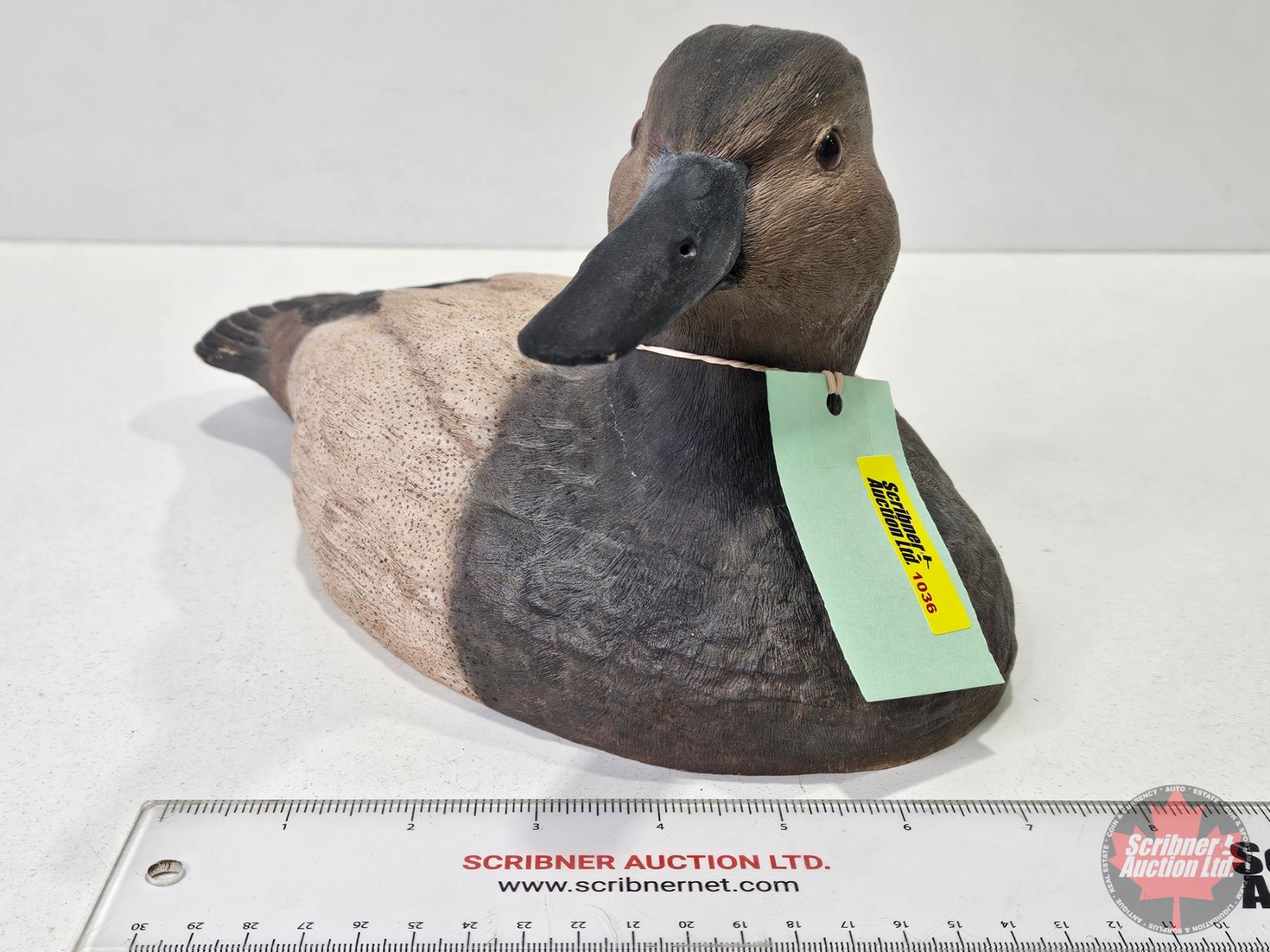 DUCK DECOY : Wooden & Signed (Consignor Tag ~ Handcarved Canvaback by Lorne Longley c.1931-2022 : Bluewater Wood Carvers : Sarnia, ON)