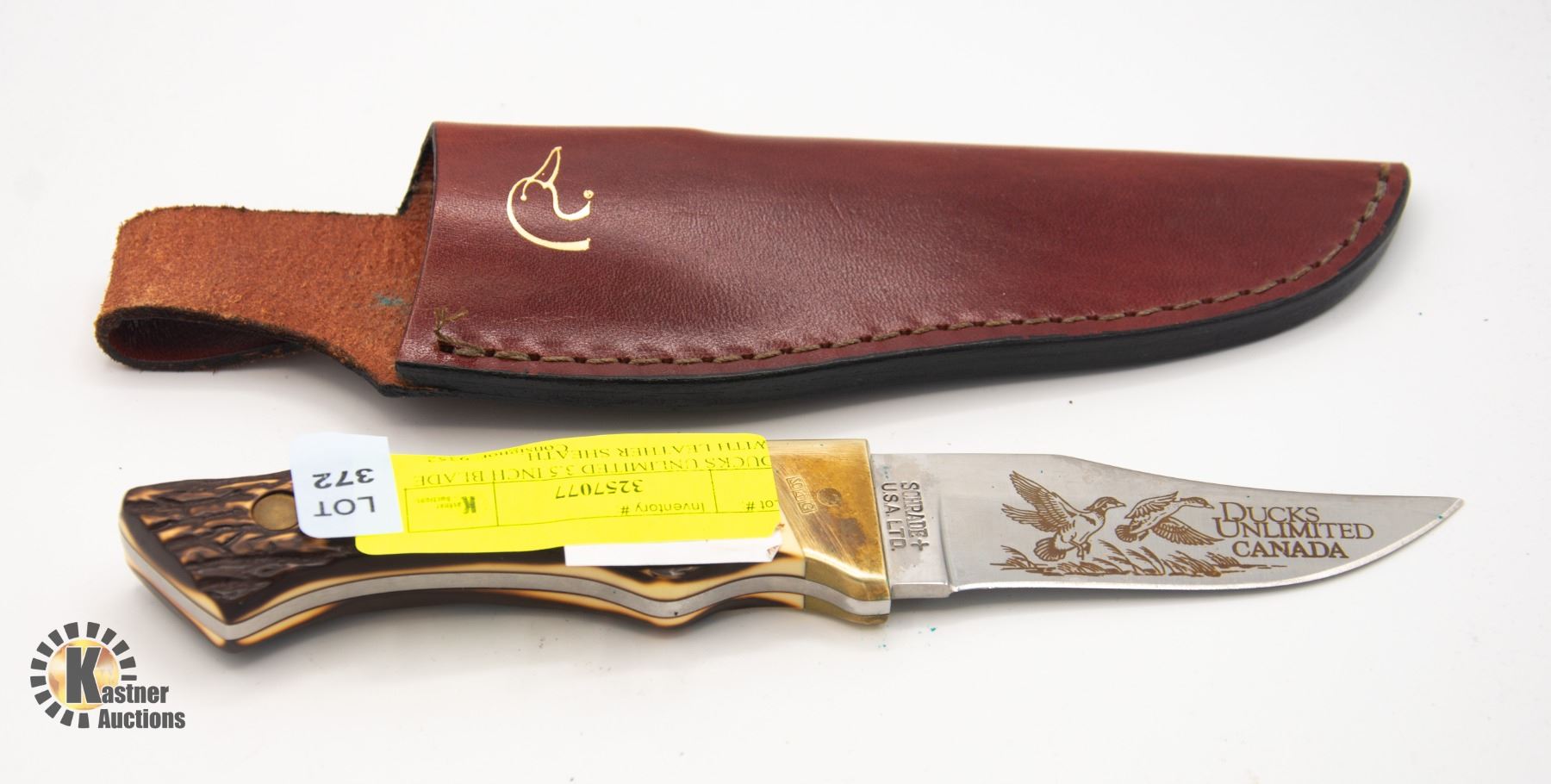 DUCKS UNLIMITED 3.5 INCH BLADE WITH LEATHER SHEATH