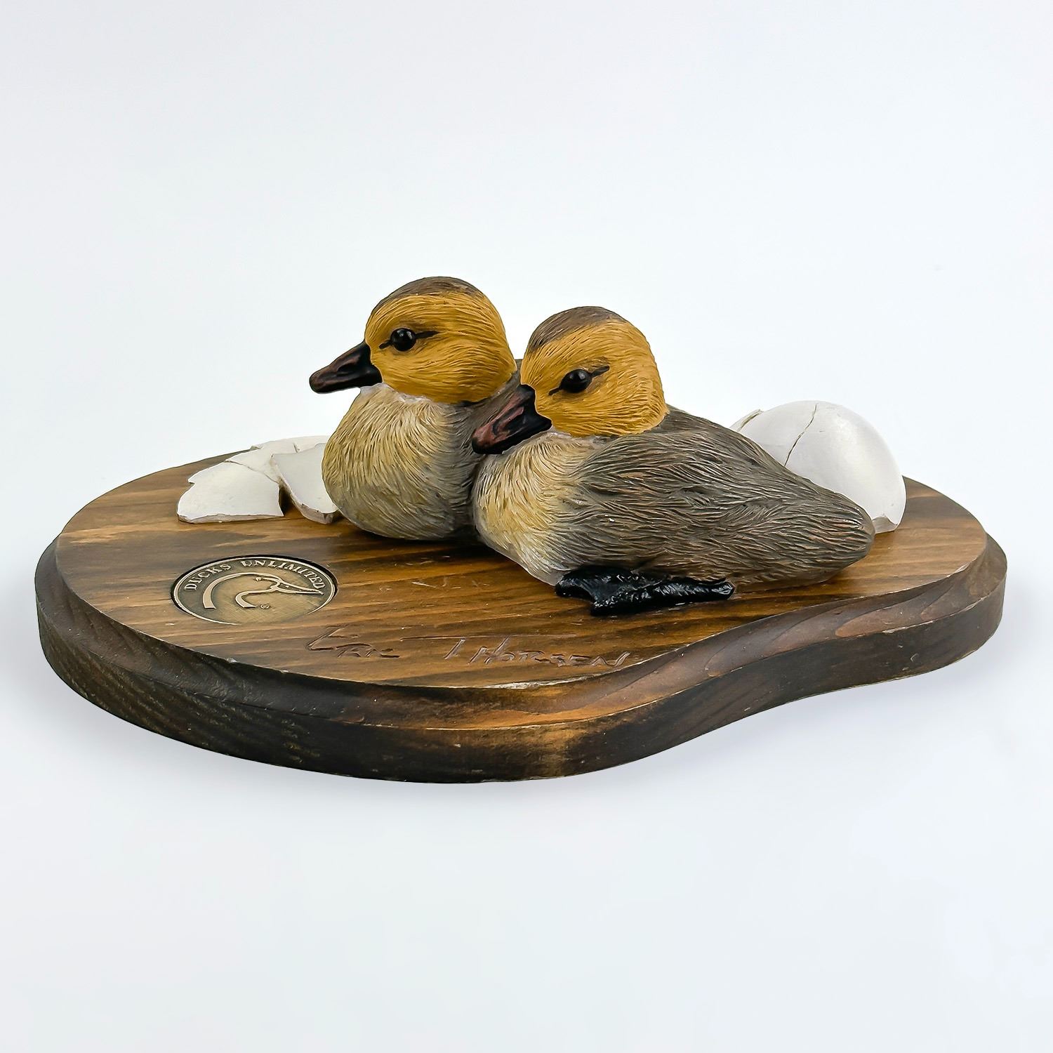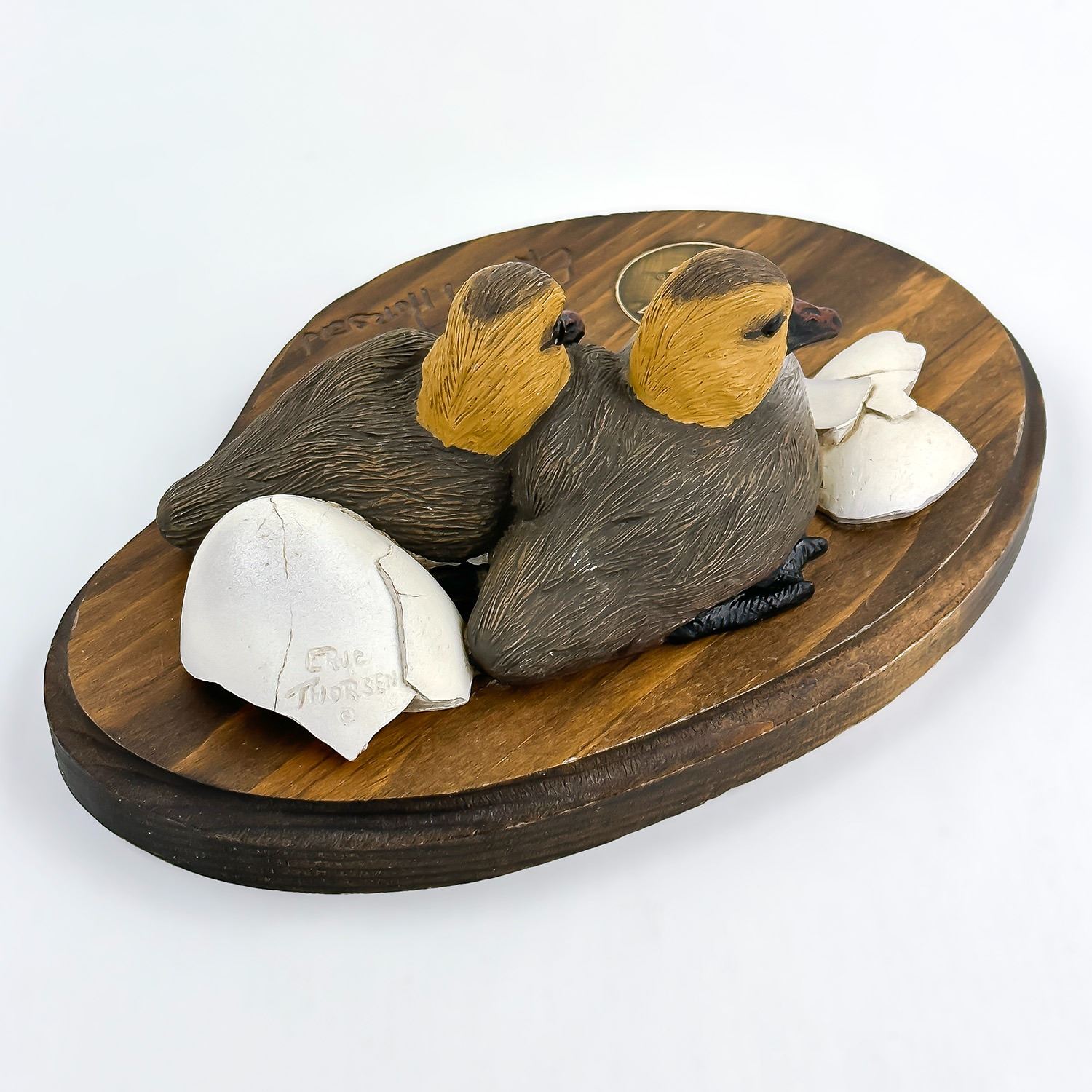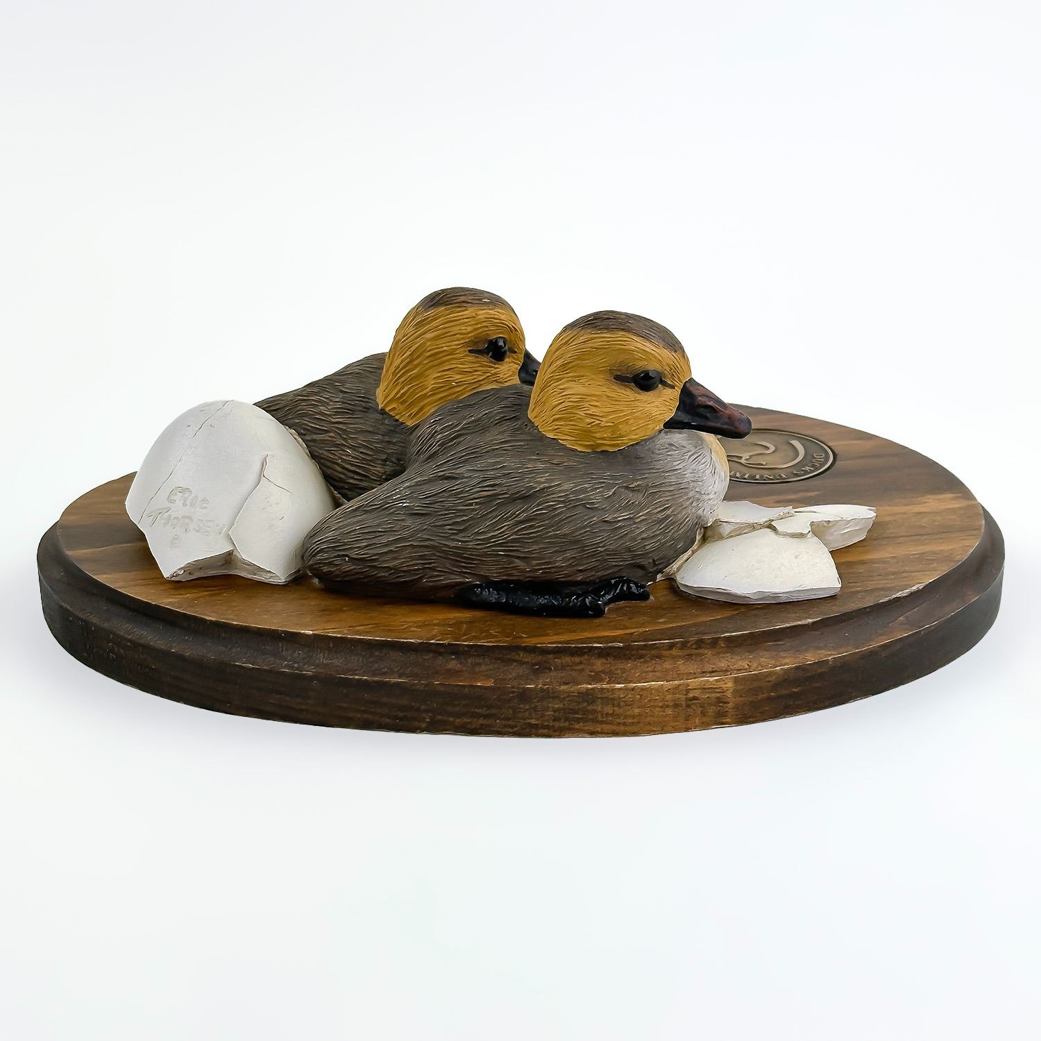 #8024 - DUCKLINGS AND EGG SHELL SCULPTURE FIGURINE - 315 MARKED ON BOTTOM. MEASURES: 9.5” (24 CM) LONG BY 6.5” (16.5 CM) WIDE AND SITS 3” (7.5 CM) HIGH
