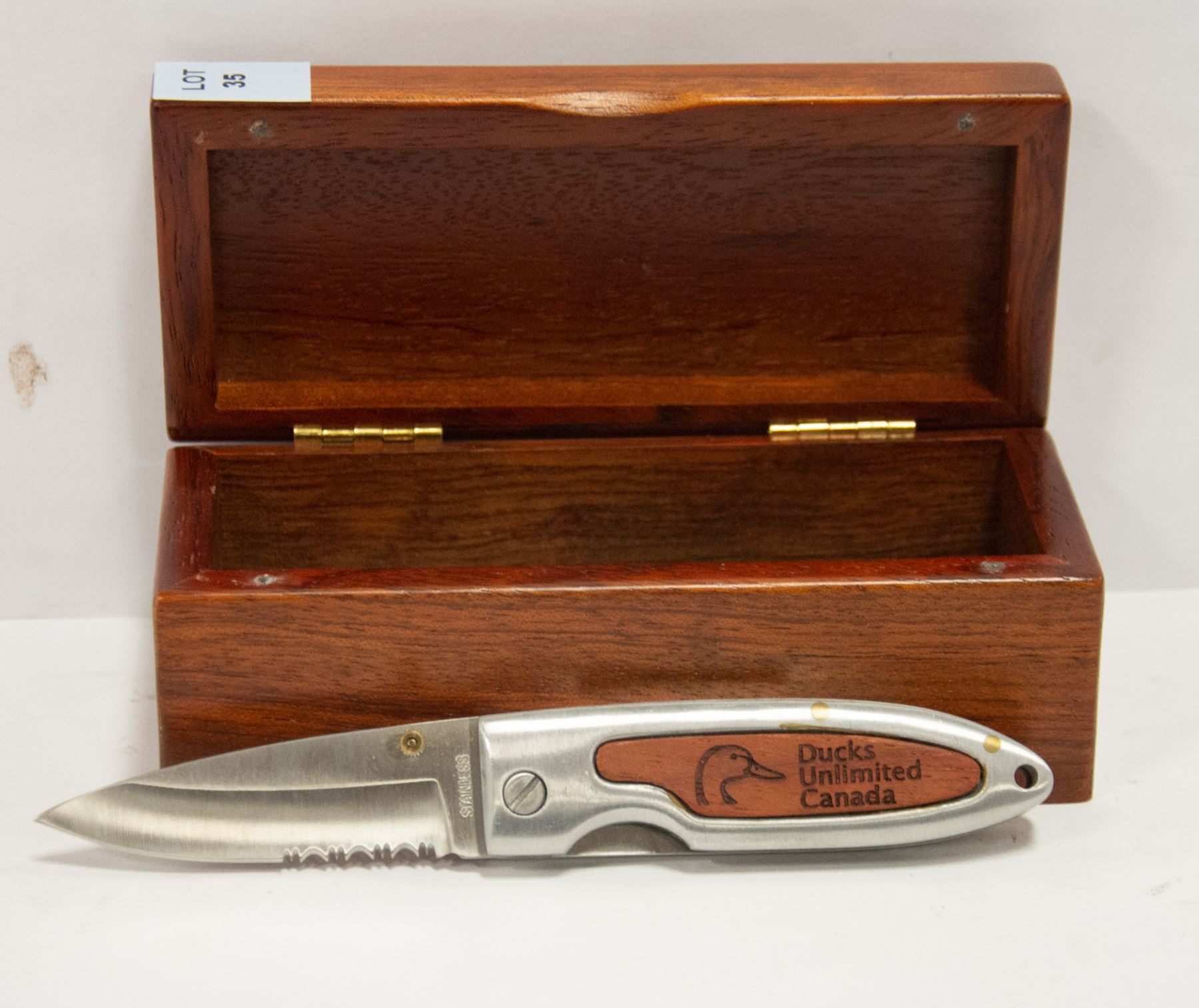 DUCKS UNLIMITED FOLDING KNIFE WITH WOOD CASE