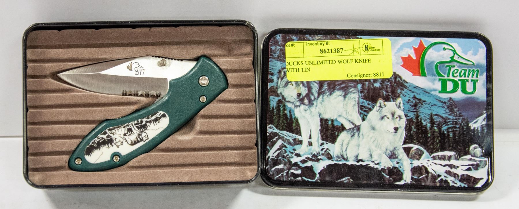 DUCKS UNLIMITED WOLF KNIFE WITH TIN