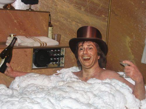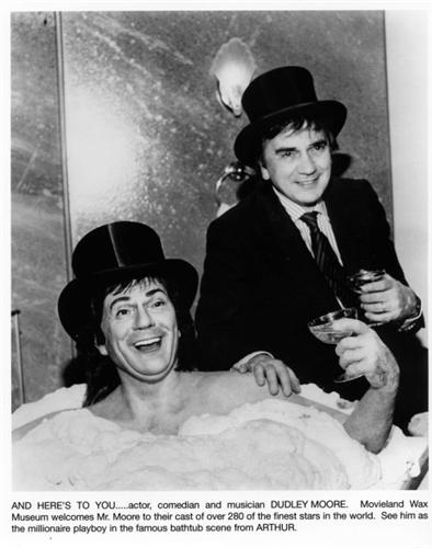 DUDLEY MOORE wax figure from Arthur & Arthur 2. Top Hat donated by Dudley Moore. Includes originally-autographed framed photo, colored photos of Dudley Moore with wax figure and unveiling photos and negatives, original sculpting photos.