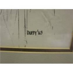 Duffy (1963) Contemporary oil on paper painting. Signed in lower right. 16.5" x 22.5" framed.